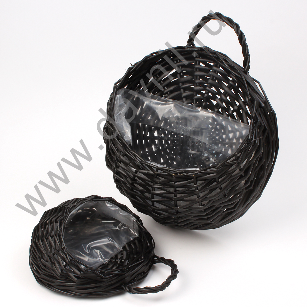 Набор кашпо плетеных настенных в виде корзины 2 шт черный