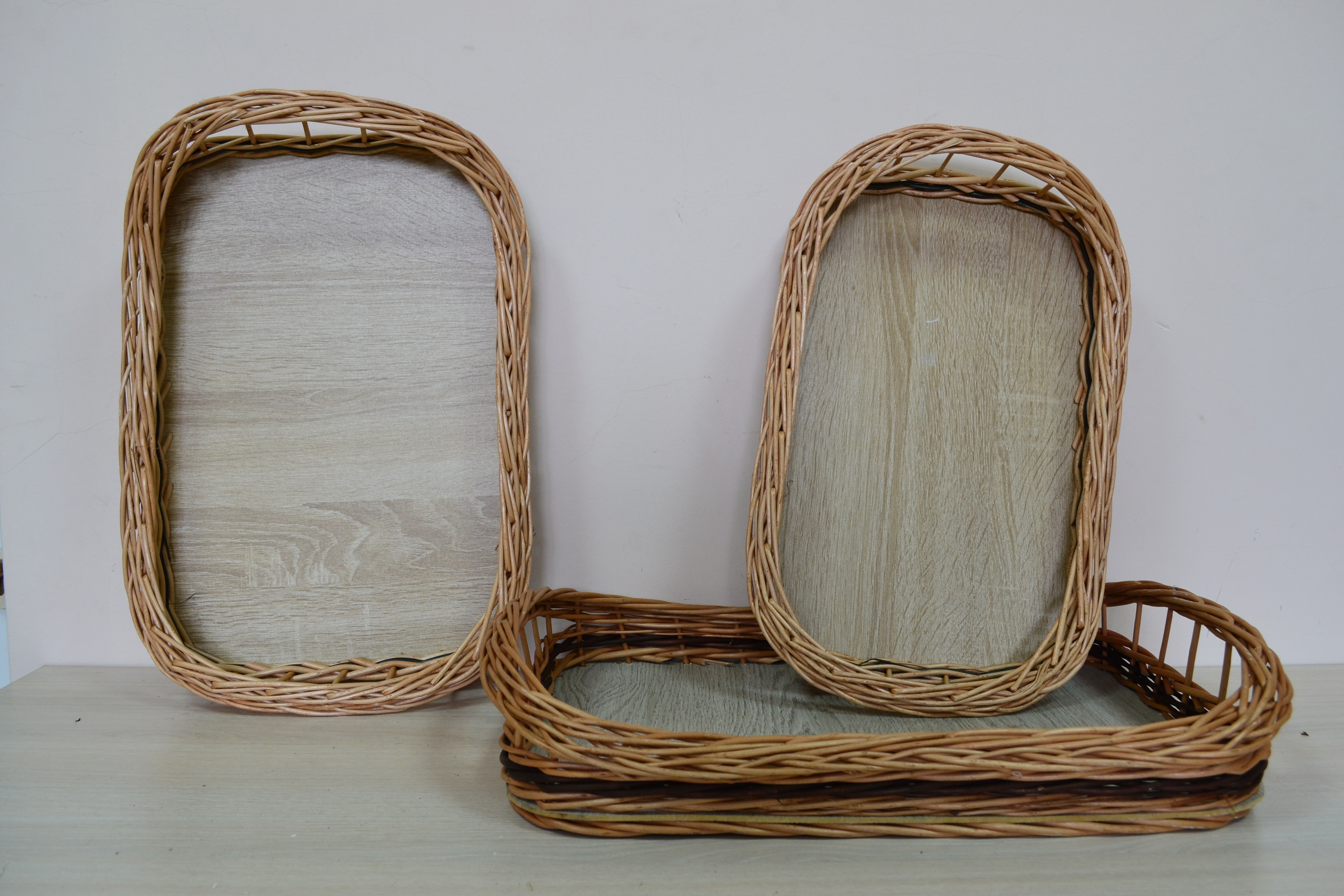 Набор плетеных подносов прямоугольных 3 шт. L M S светло-коричневые