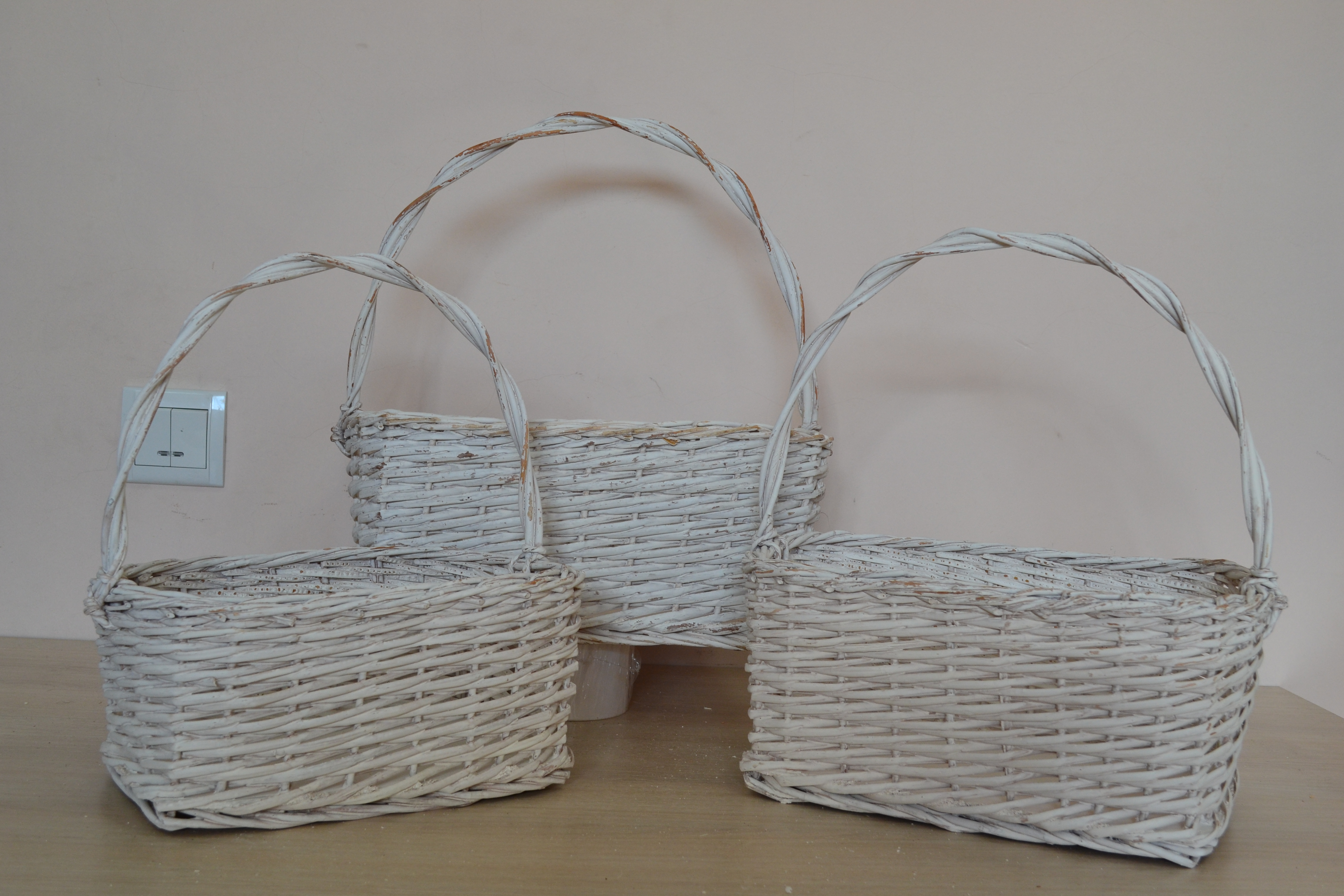 Набор корзин плетеных 3 шт. L M S  белые с крученой ручкой