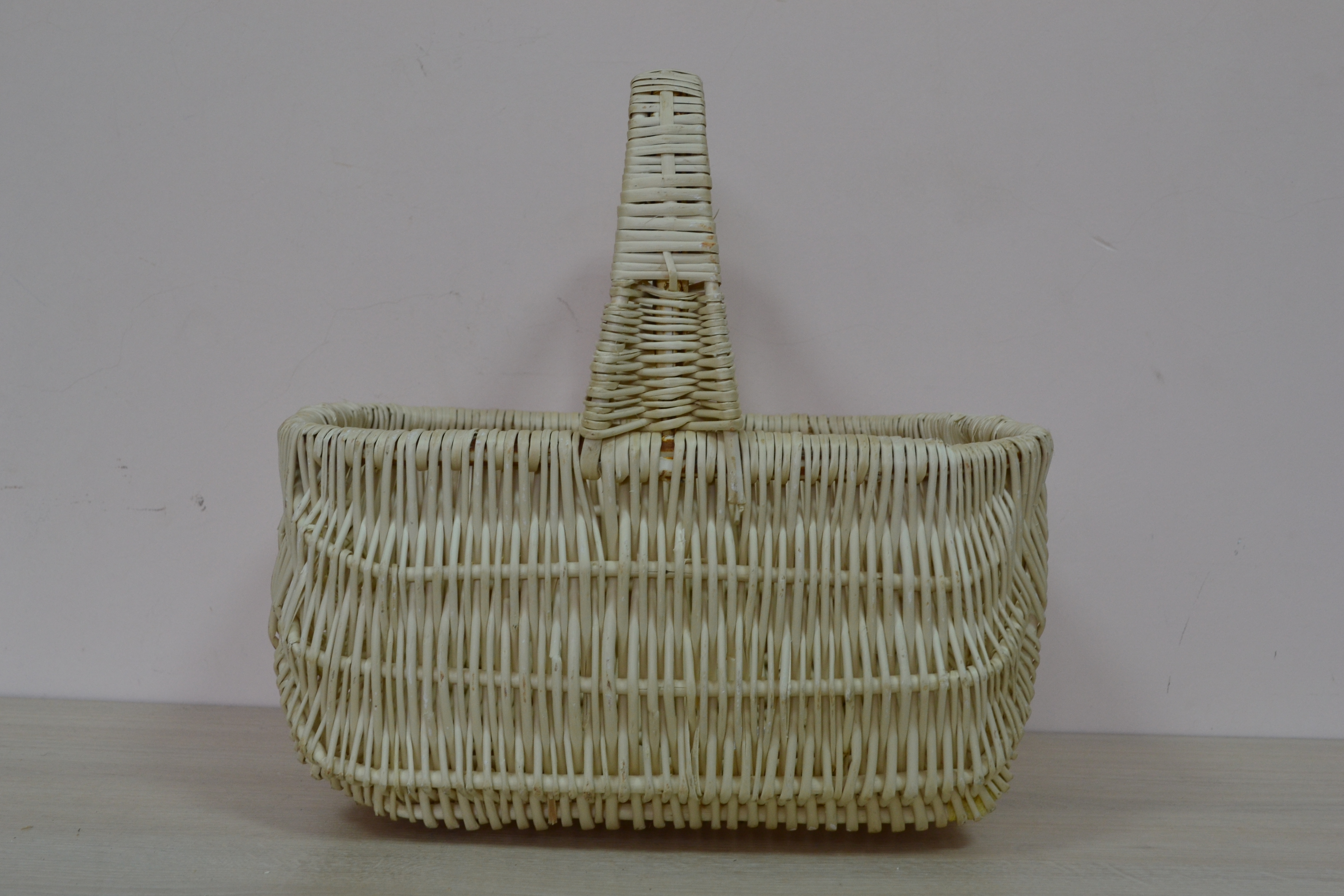 Корзина плетеная овальная 1 шт 40*27*73 см белая с высокой ручкой