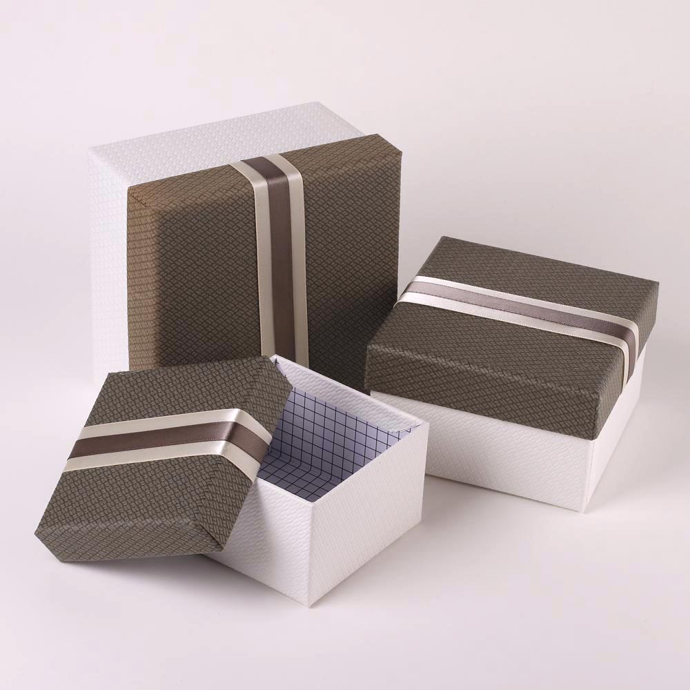 Набор коробок 13,5*13,5*7,5 см рогожка 3 шт бело-серый