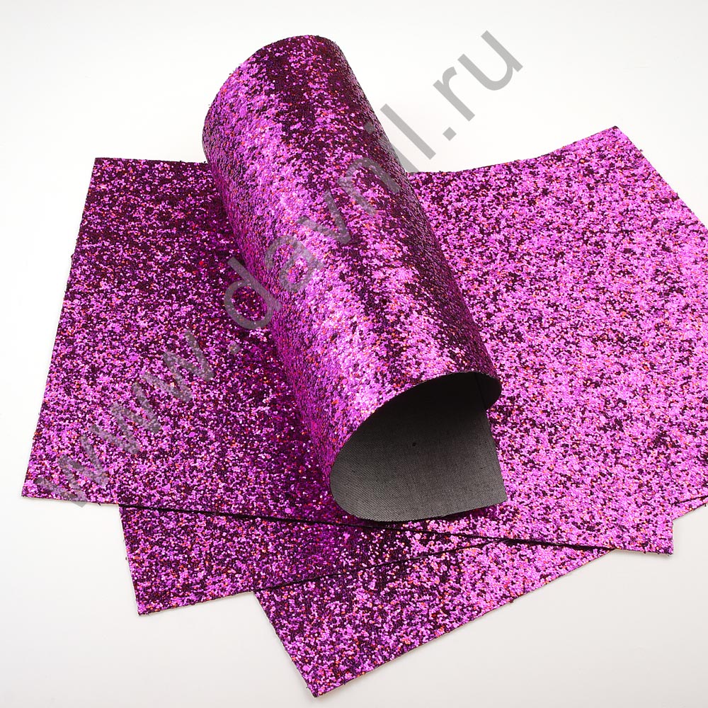 Кожзам крупный глиттер 21*30 см 5 шт розовый