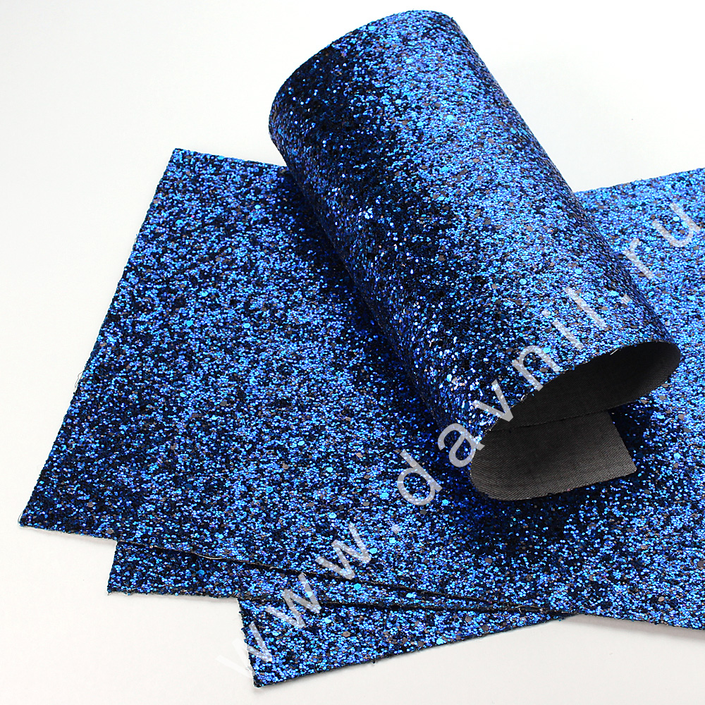 Кожзам крупный глиттер 21*30 см 5 шт синий