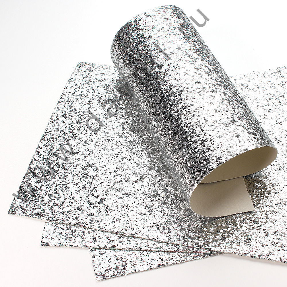Кожзам крупный глиттер 21*30 см 5 шт серебряный