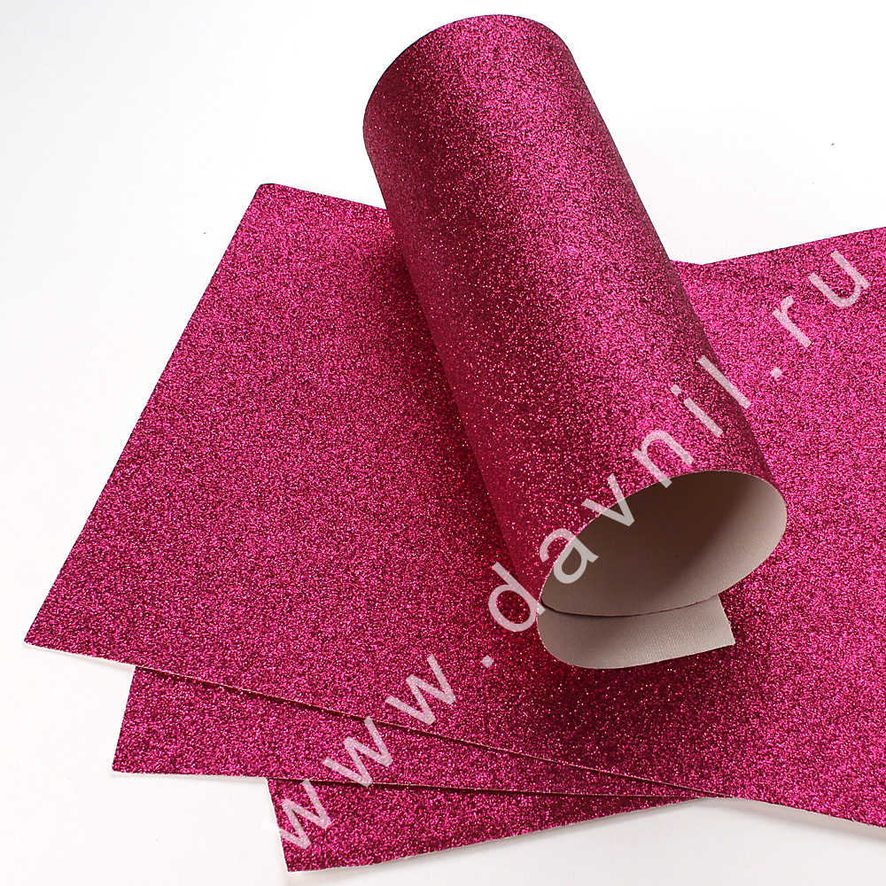 Кожзам средний глиттер 21*30 см 5 шт ярко-розовый(фуксия)