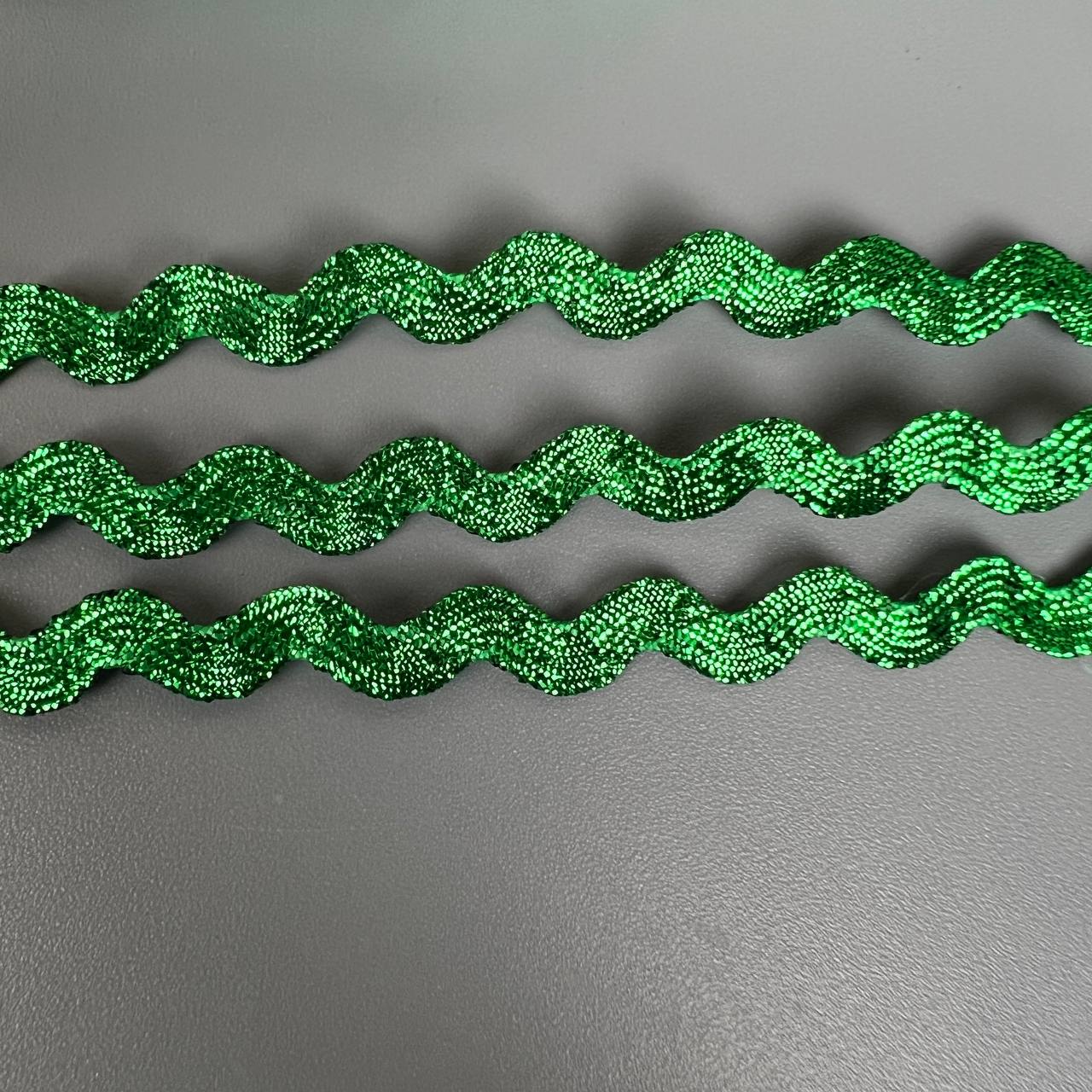 Тесьма вьюнок 0,5 см 25 ярдов зелёная с люрексом 4
