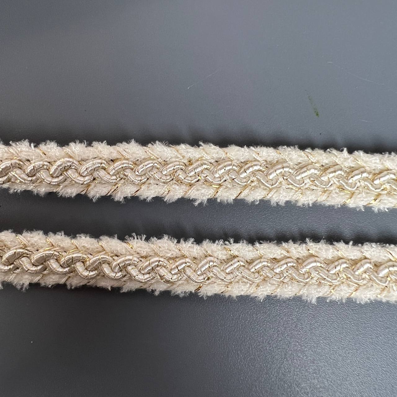 Тесьма 15 мм бежевая с золотом 10 ярдов