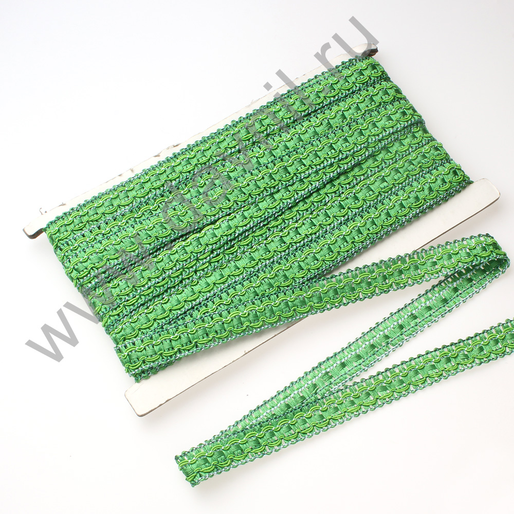 Тесьма 1,2 см 20 ярдов декоративная плетеная зелёная 5