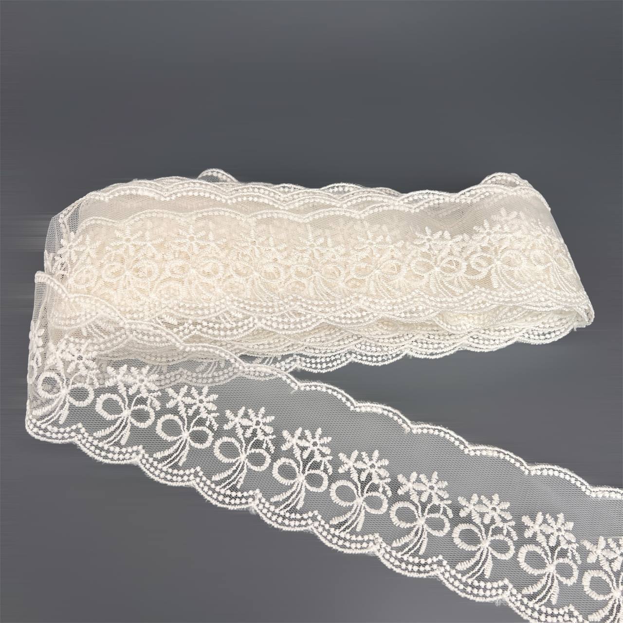 Кружево 6,5 см ажурное на фатине белое 9,7 м №99