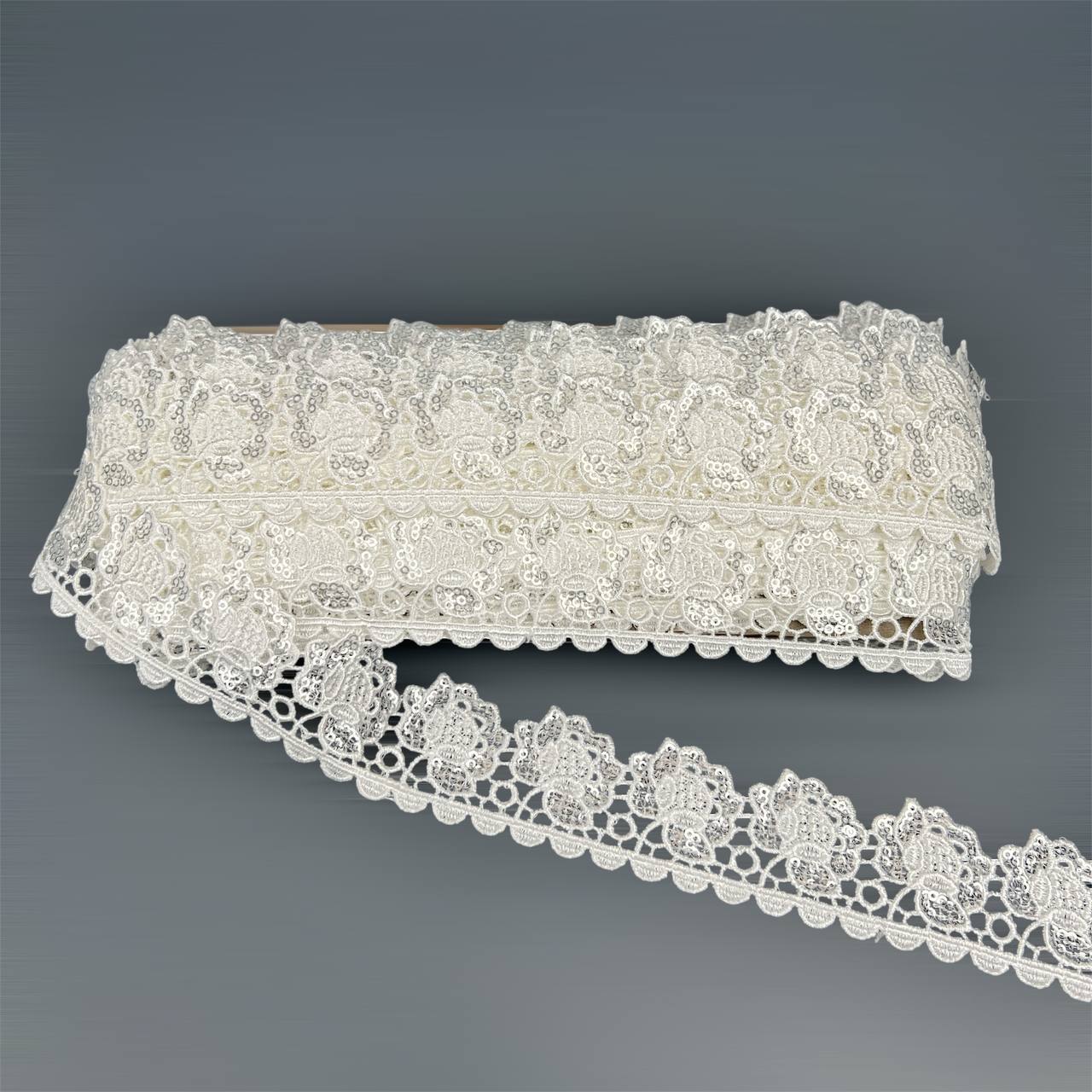 Кружево 3 см ажурная роза с пайетками 13,5 м белое №104