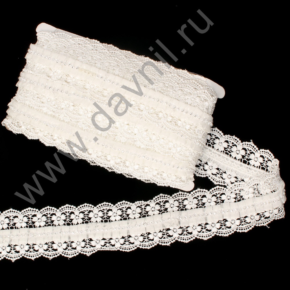 Кружево на органзе 5 см цветок со стразами 13,5 м айвори