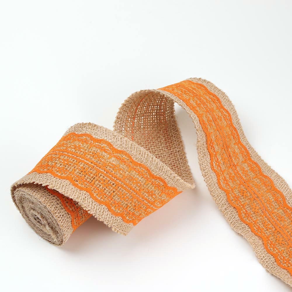 Тесьма 6 см 2 м мешковина с оранжевым кружевом