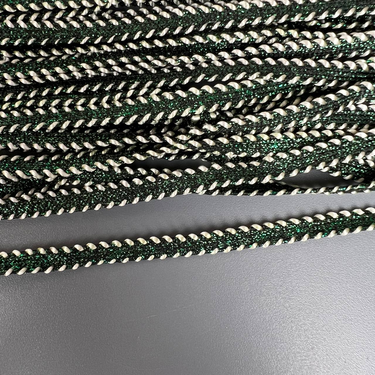 Тесьма 5 мм изумрудная косичка с люрексом 10 ярдов