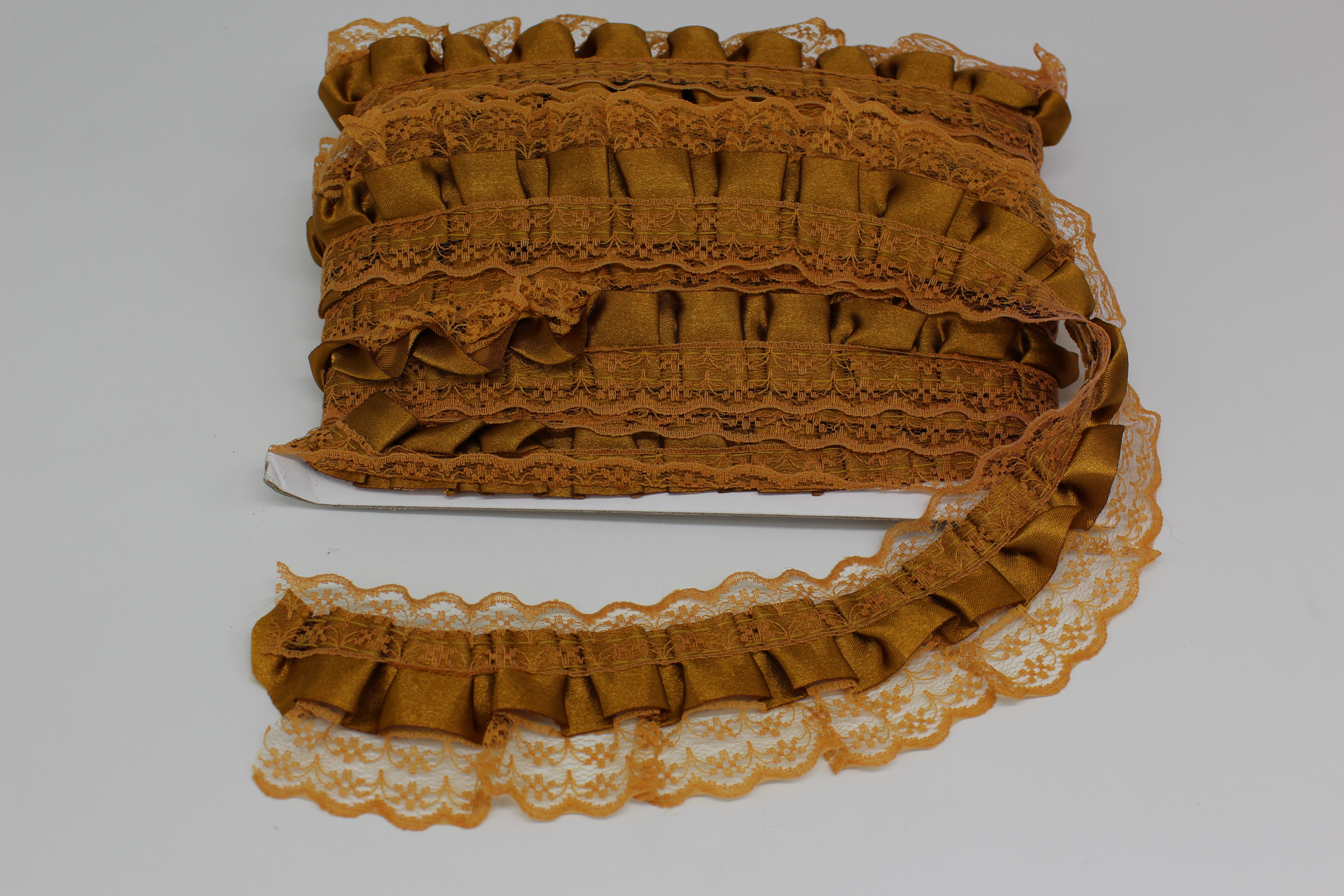 Тесьма 4 см 10 ярдов рюшечка из ленты светло коричневая
