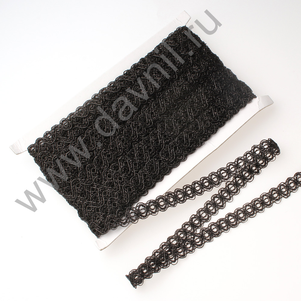 Тесьма зигзаг 1,5 см 20 ярдов двойной с люрексом чёрный