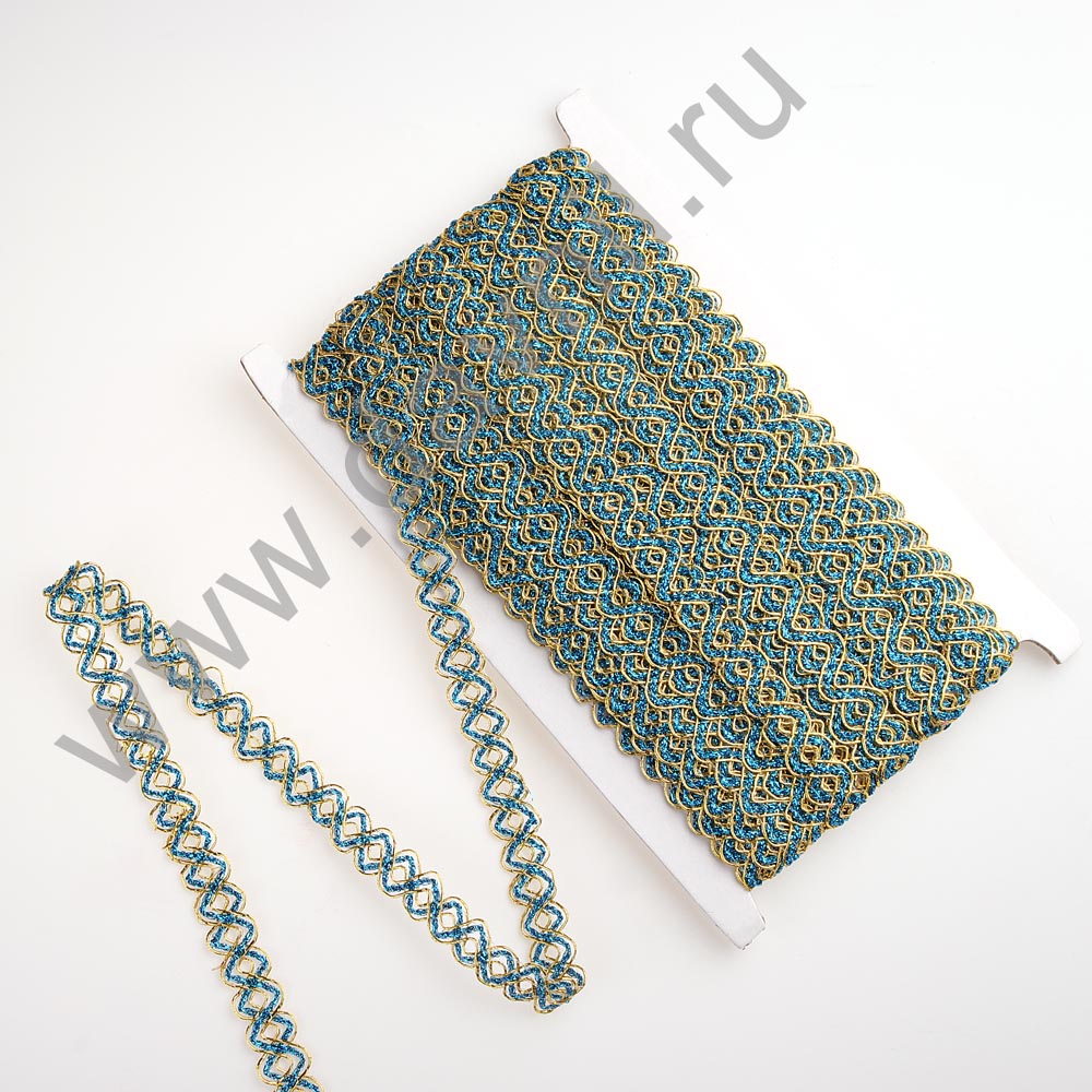 Тесьма зигзаг 1,5 см 20 ярдов двойной с люрексом бирюзовый