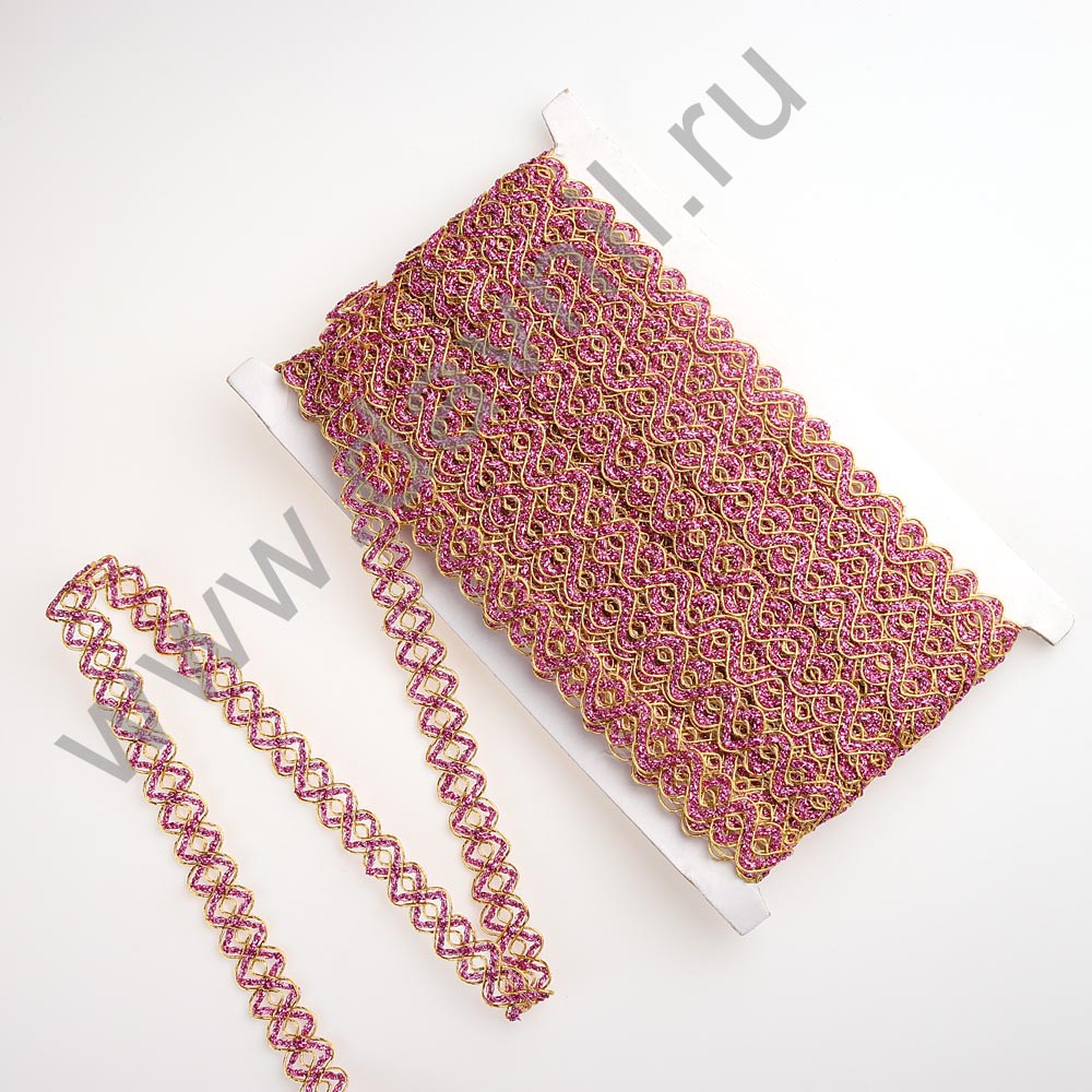 Тесьма зигзаг 1,5 см 20 ярдов двойной с люрексом фуксия