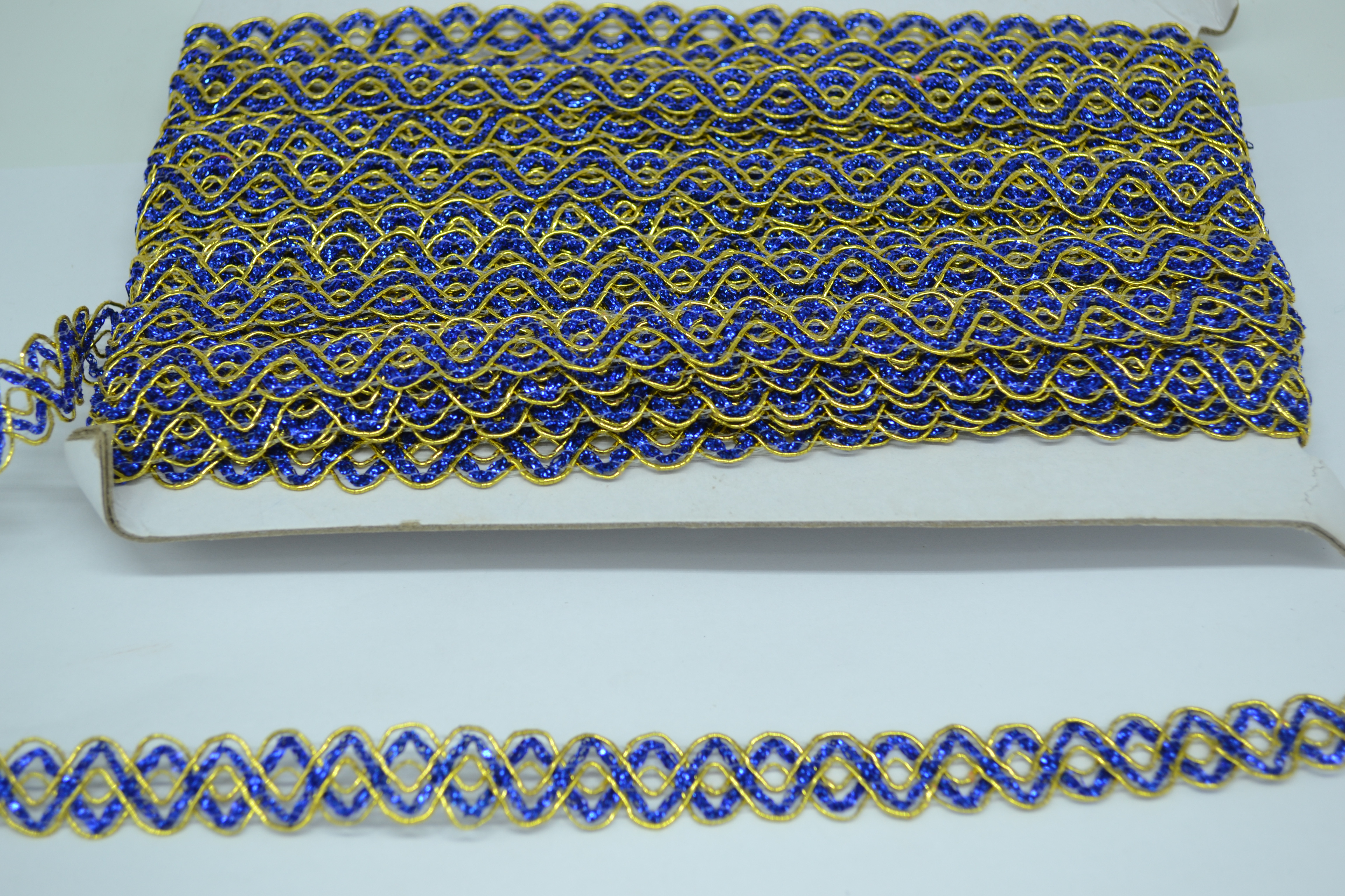 Тесьма зигзаг 1,5 см 20 ярдов двойной с люрексом синий