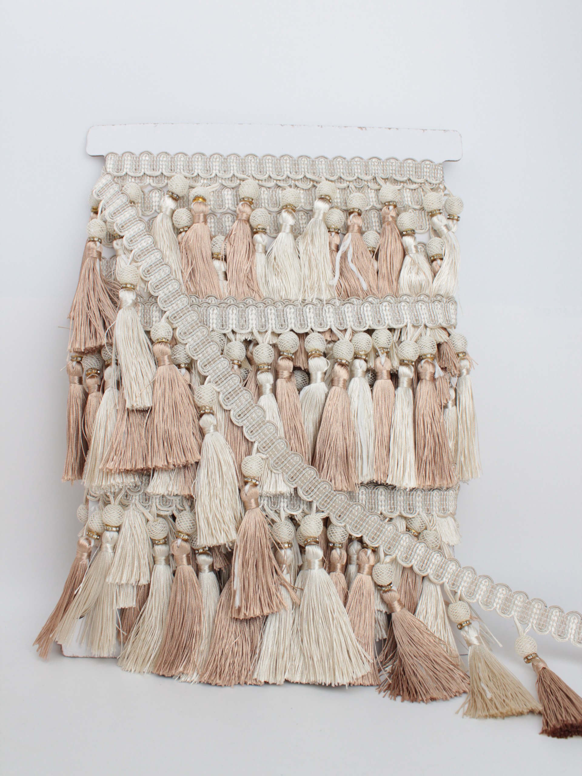 Бахрома шторная 12 м с кисточкой 12 см айвори с бежевым
