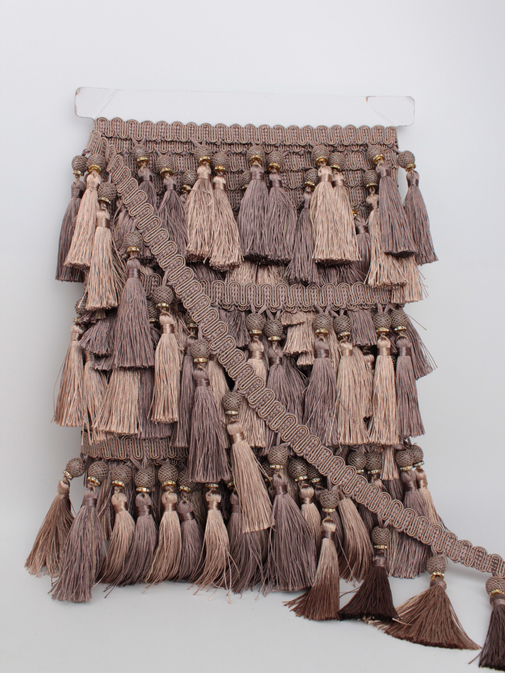 Бахрома шторная 12 м с кистокной 10 см бежево-коричневая