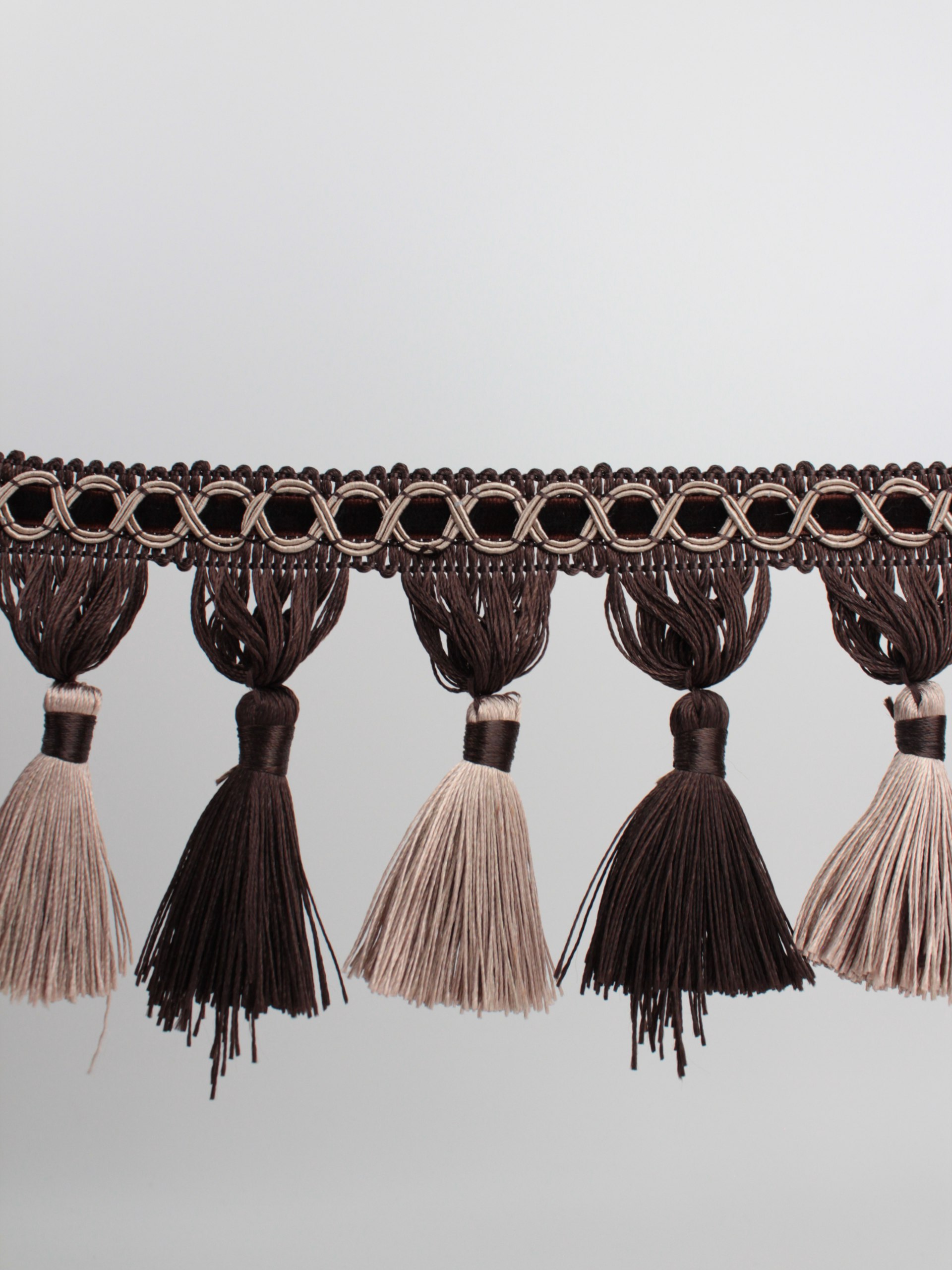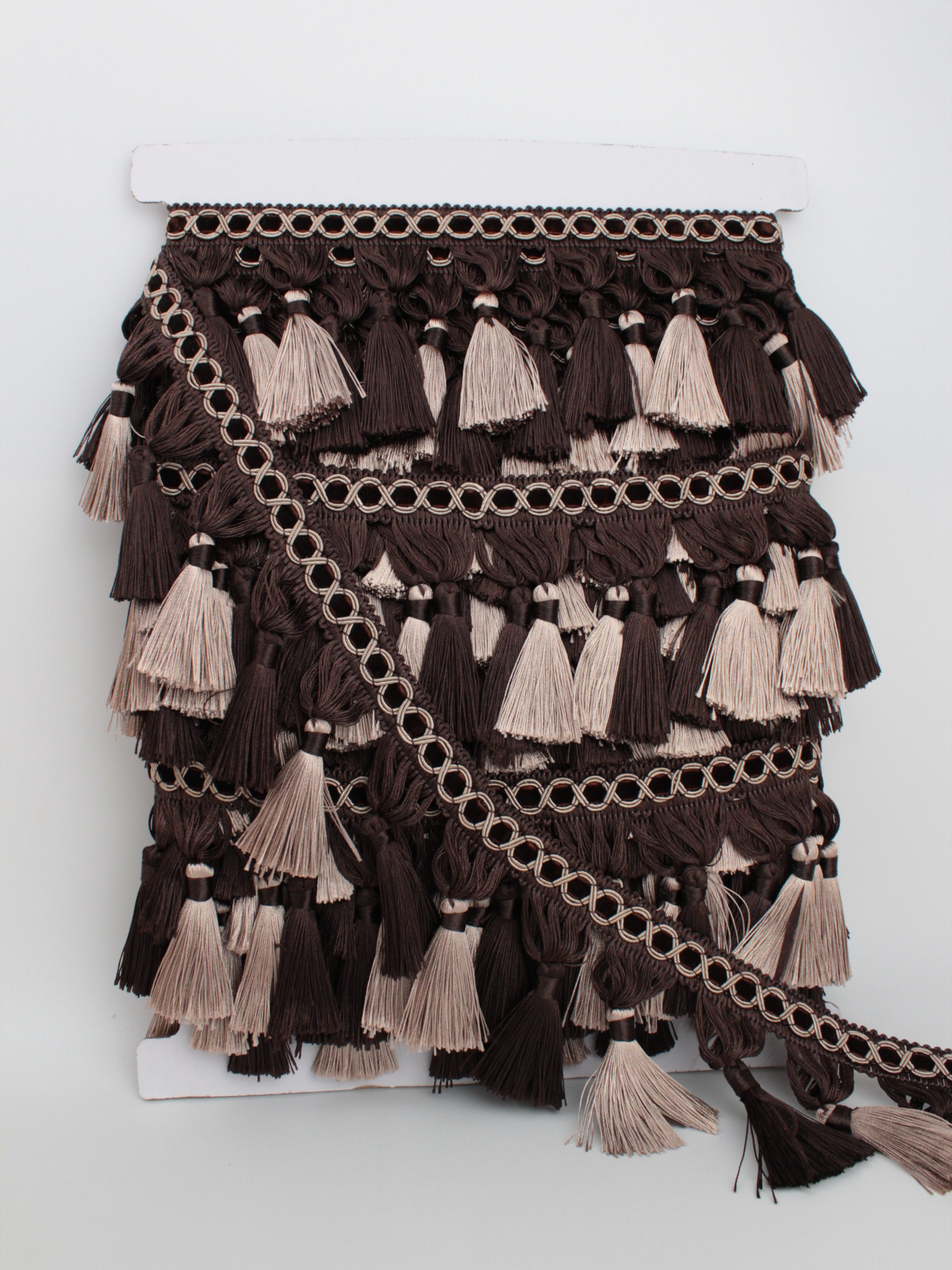 Бахрома шторная 12 м с кисточкой 10 см бежево-коричневая