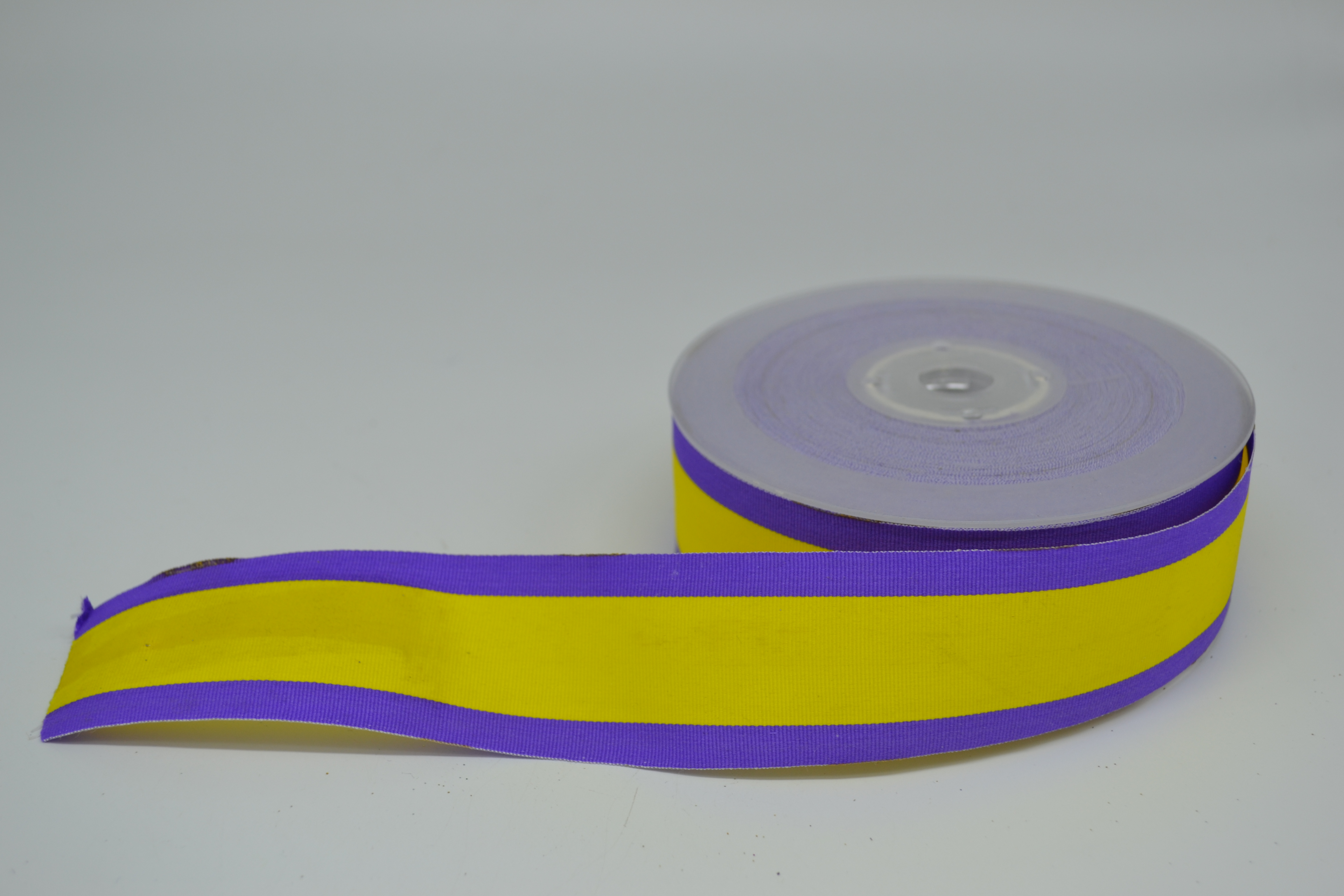 Лента тканевая 4 см 50 ярдов жёлтая в сиреневую полоску