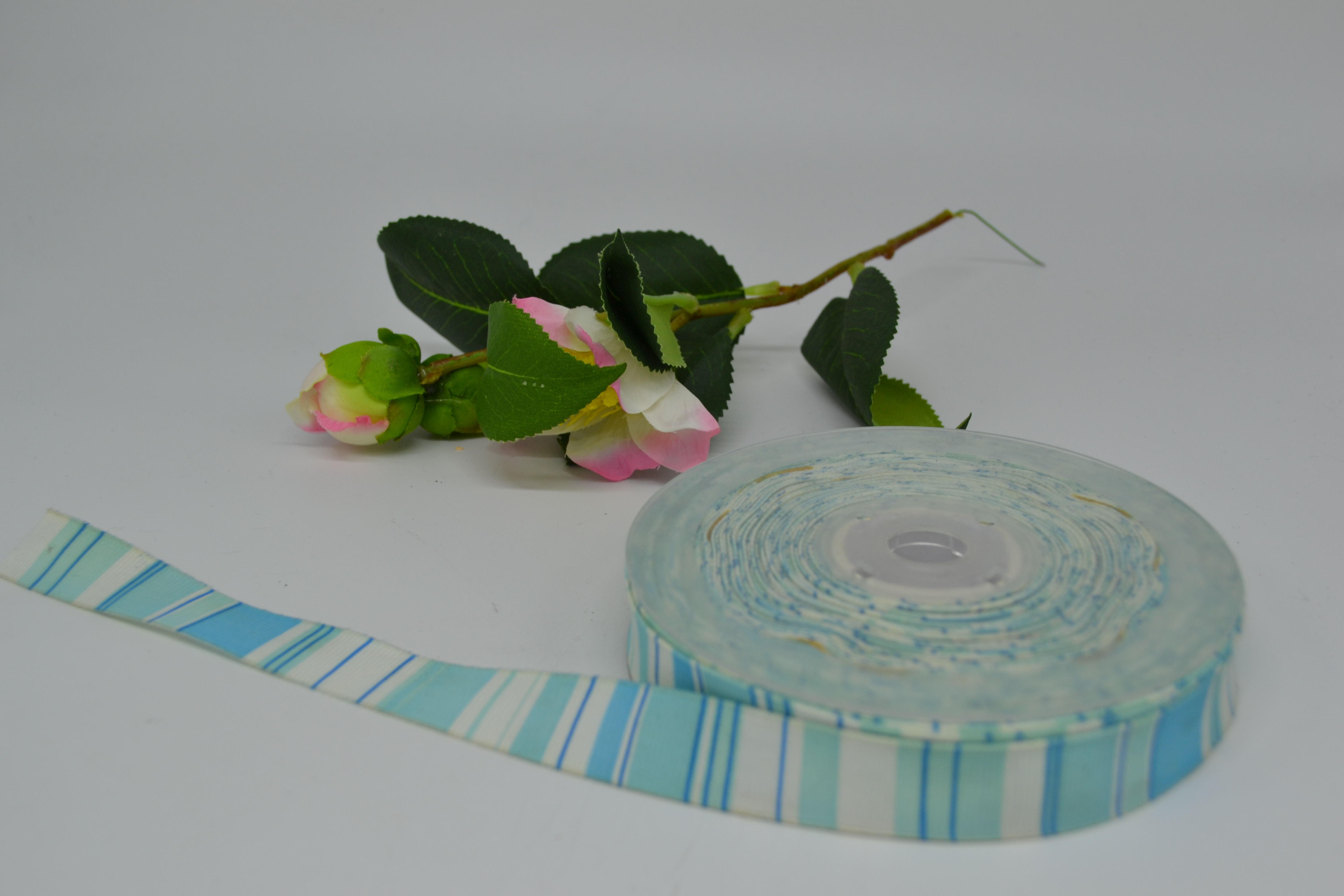 Лента тканевая 2 см 50 ярдов бирюза в полосочку