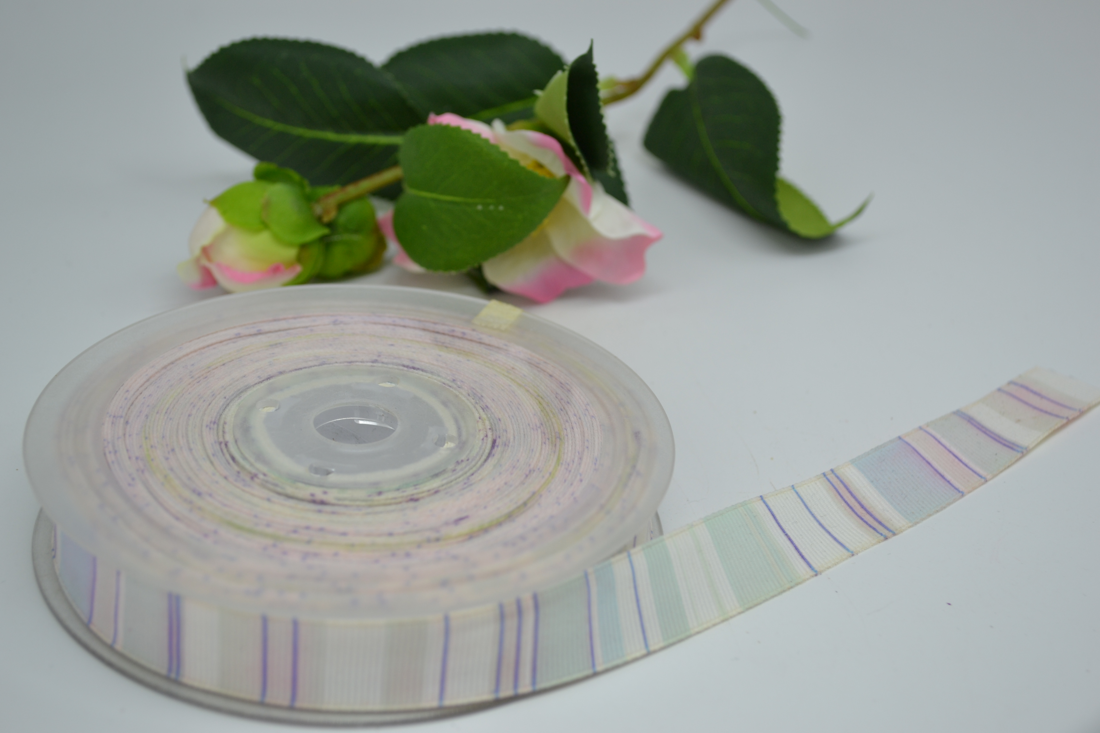 Лента тканевая 2 см 50 ярдов сиренево бежевая в полосочку