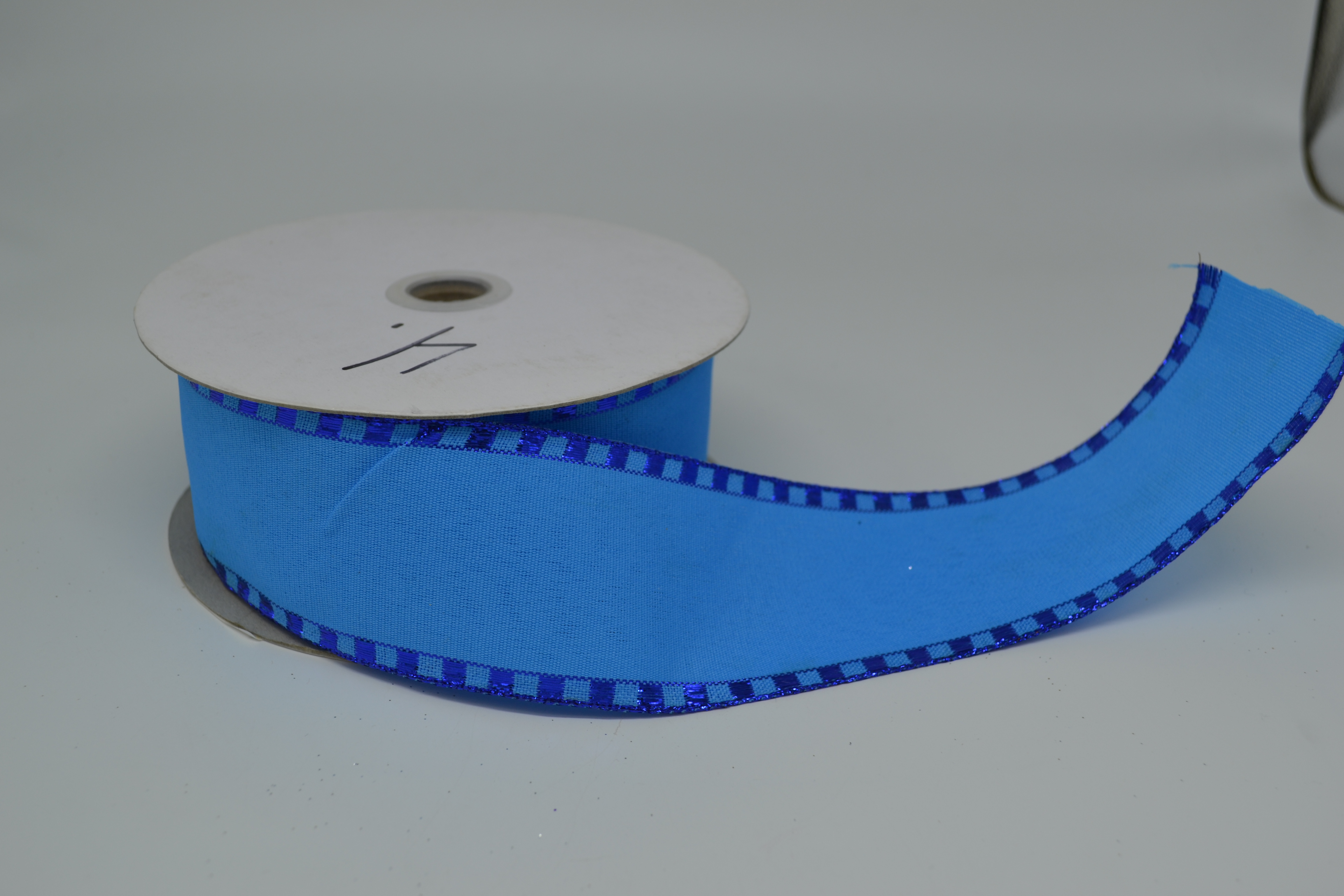 Лента тканевая 5 см 30 ярдов голубая с синей окантовкой в клеточку