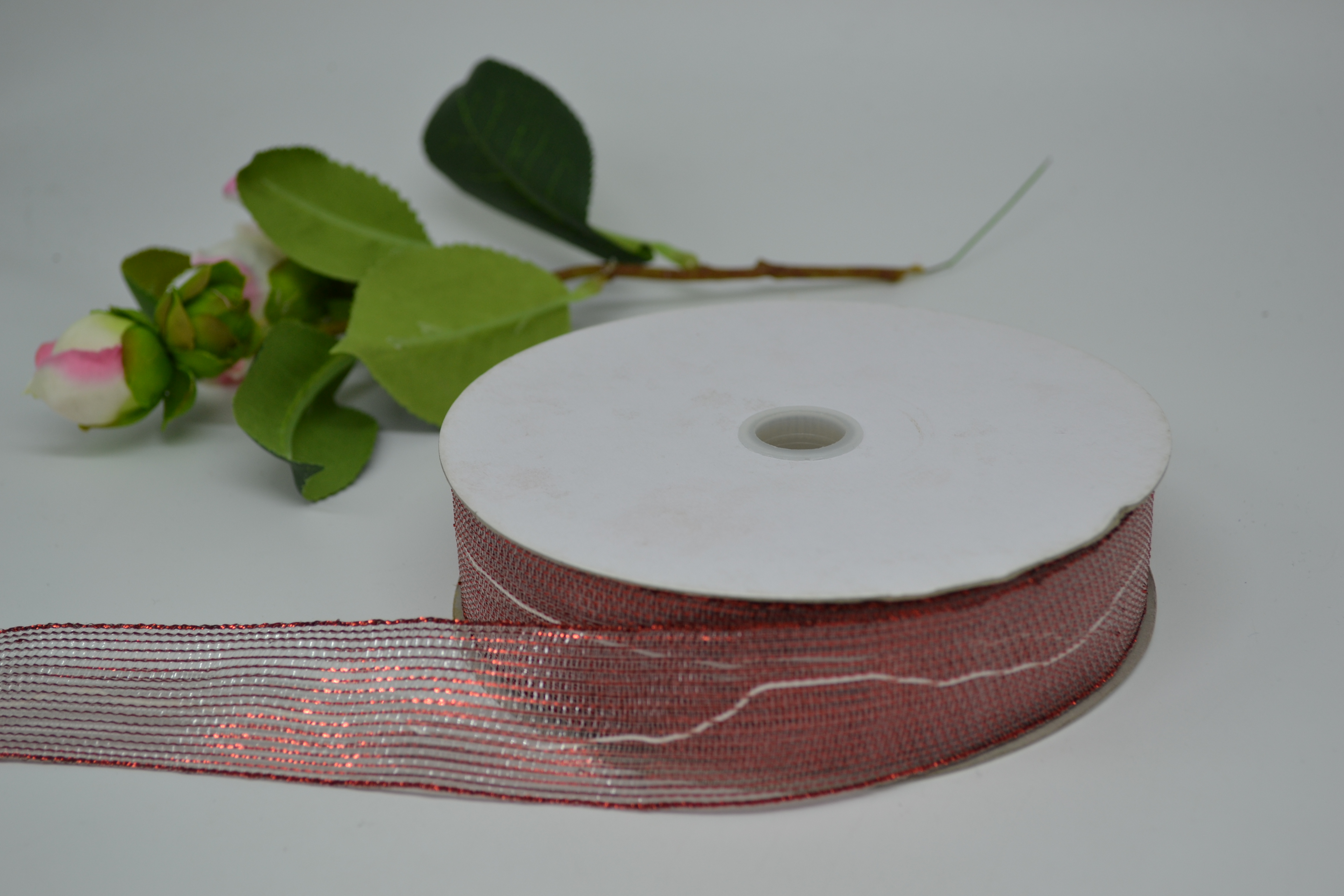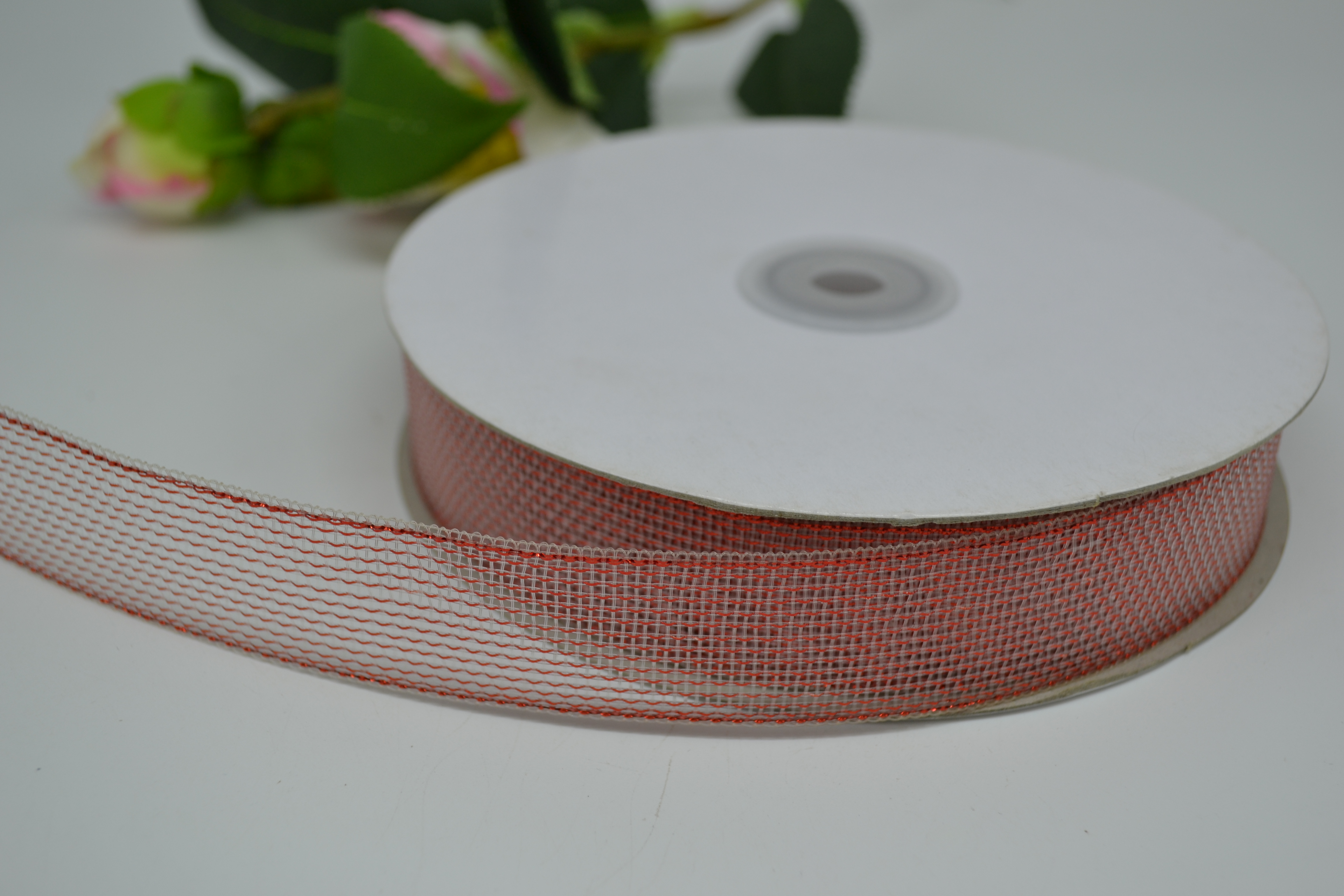 Лента сетка 2,5 см 50 ярдов красная с люрексом