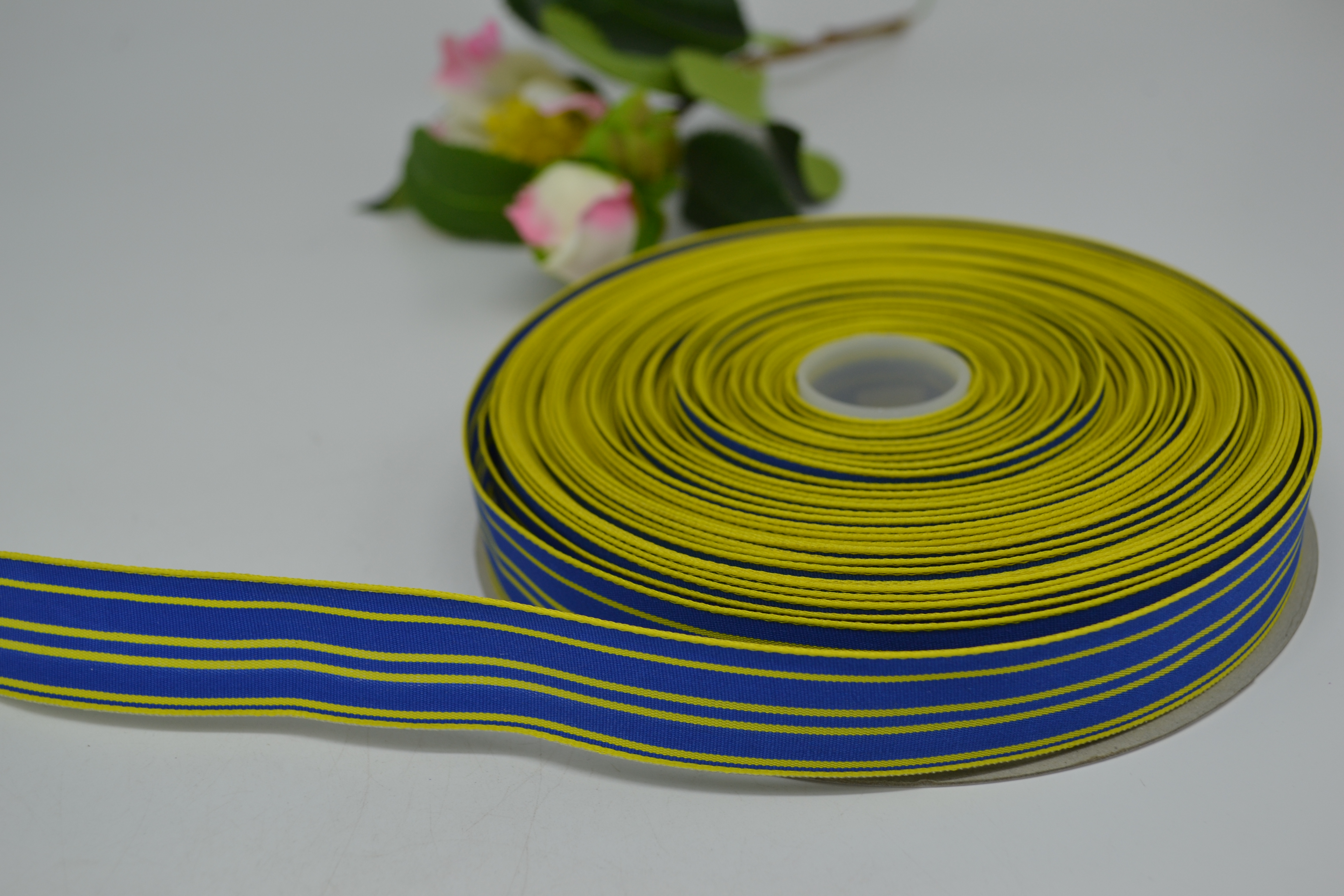 Лента тканевая 2,5 см 50 ярдов синяя в жёлтую полосочку