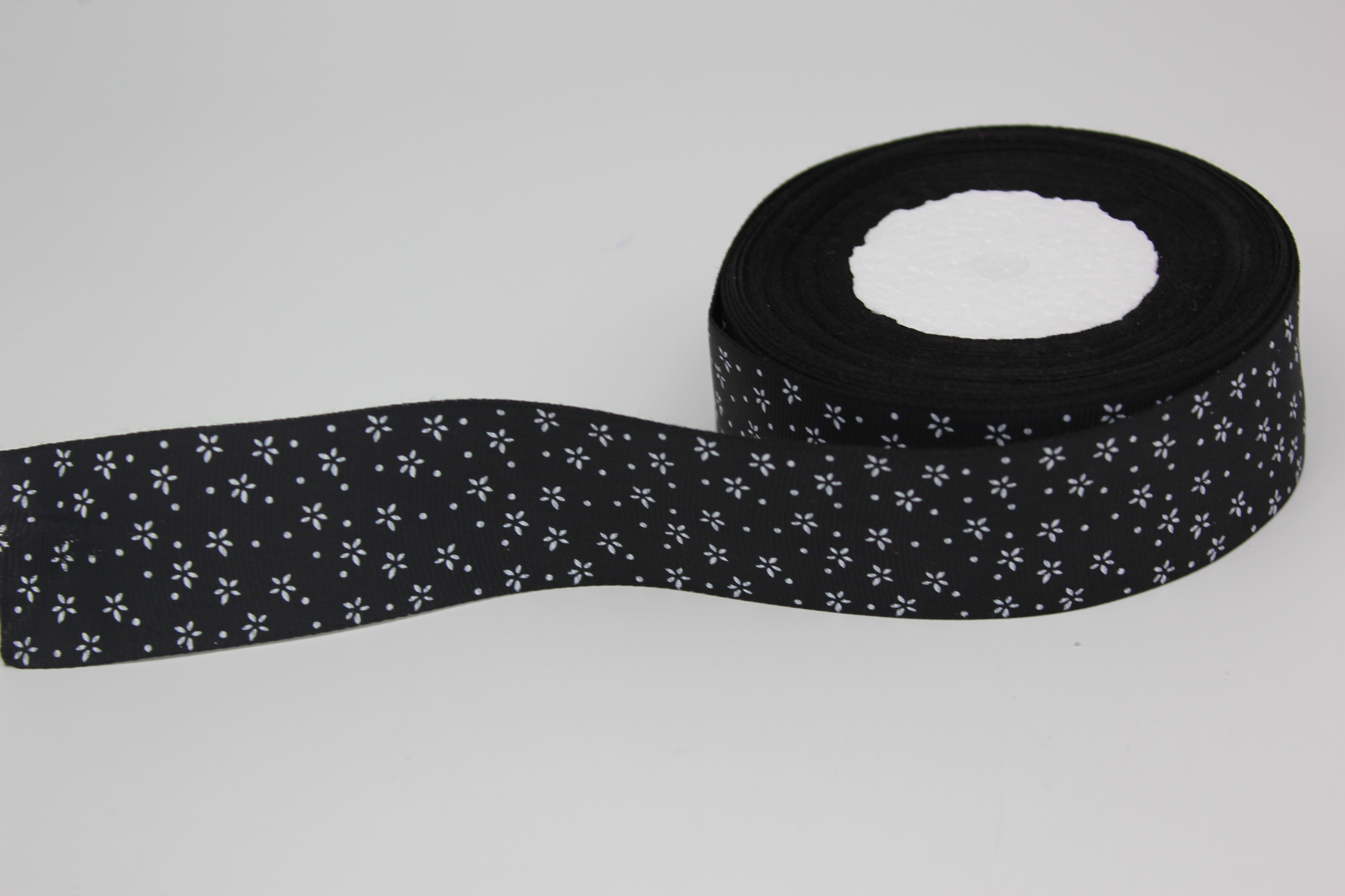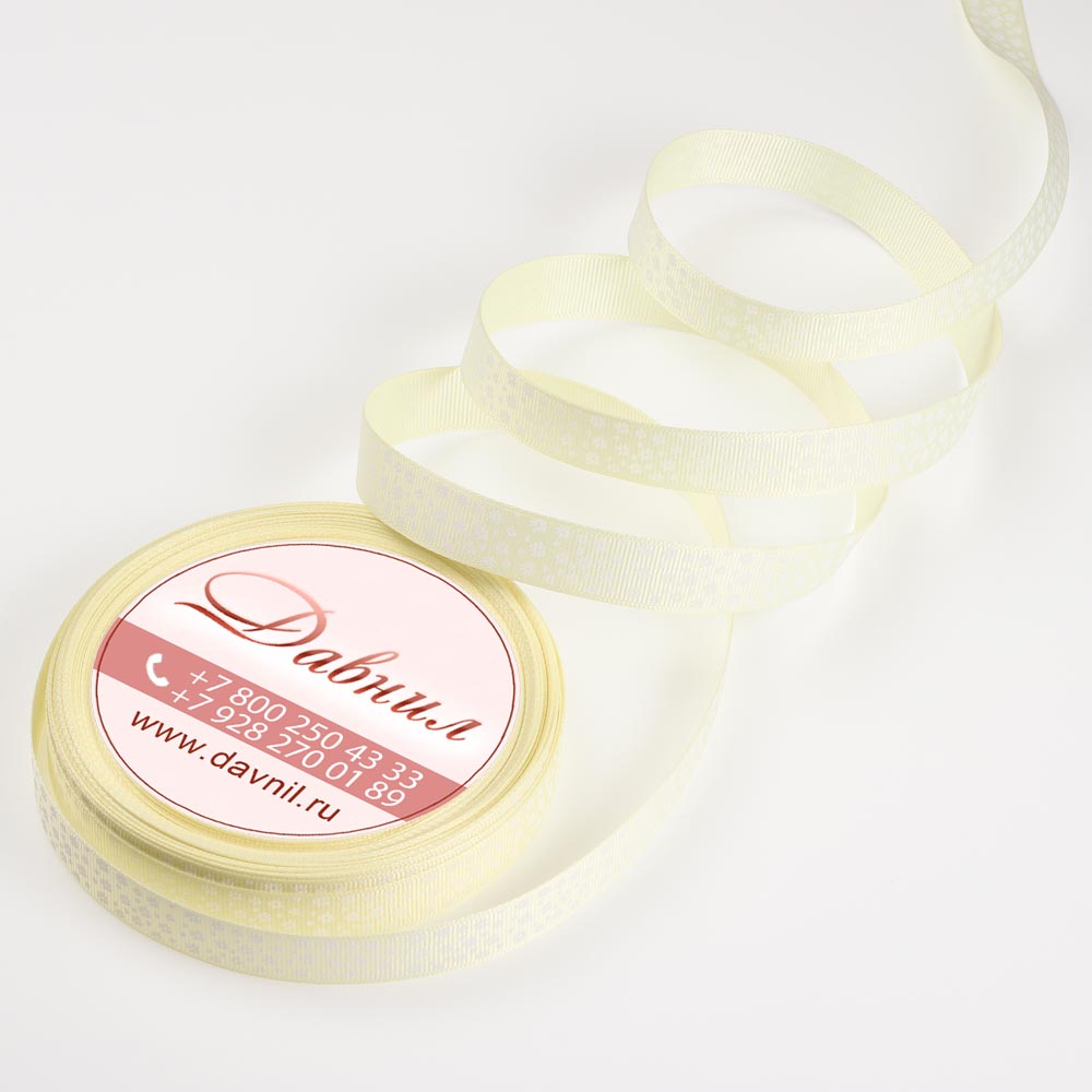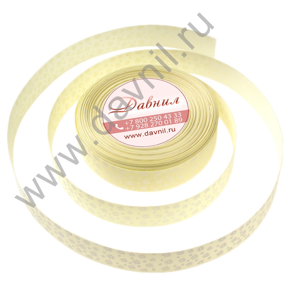 Лента репсовая 1,5 см 25 ярдов "Мелкий цветок" айвори 008