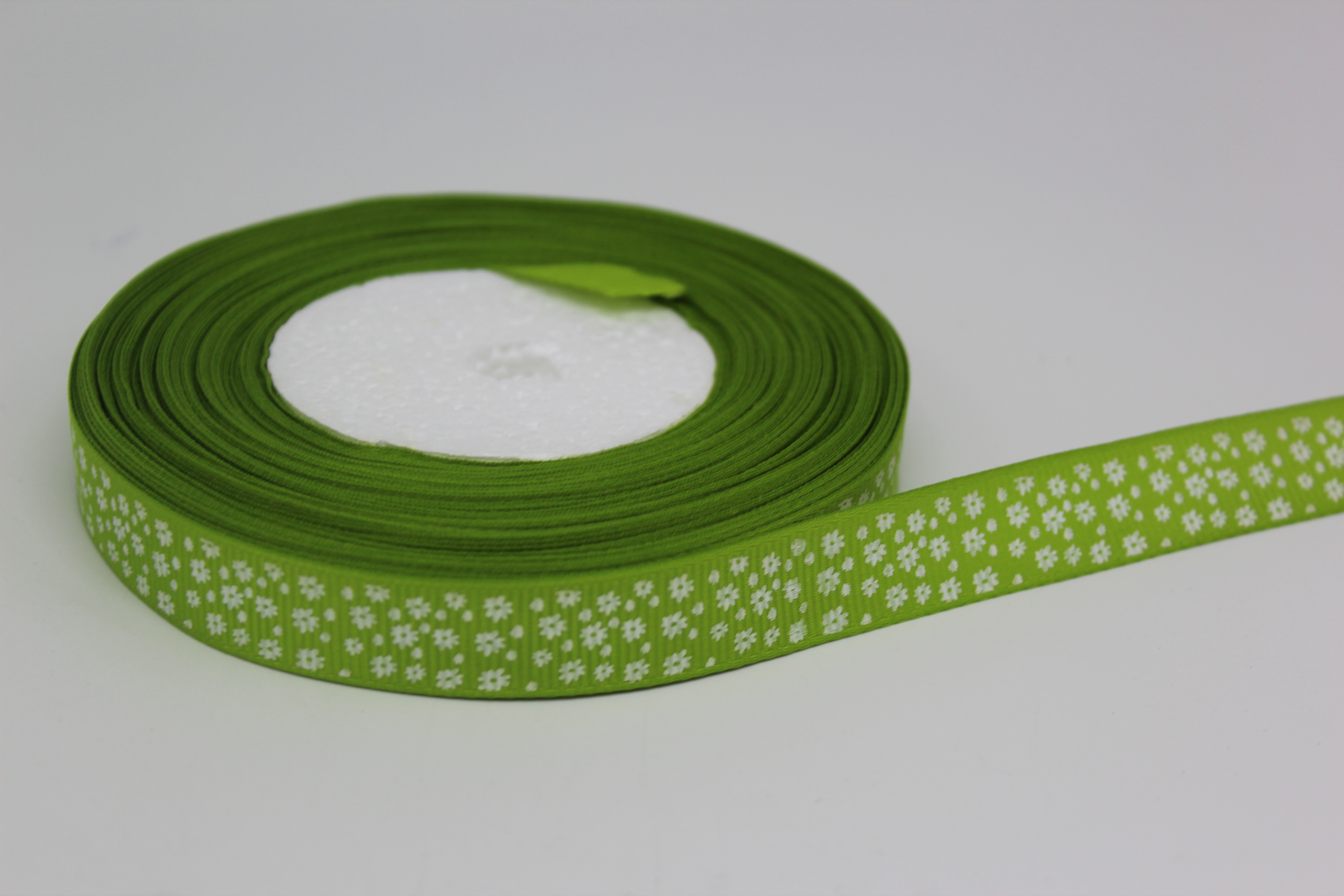 Лента репсовая 1,5 см 25 ярдов "Мелкий цветок" оливковая 076