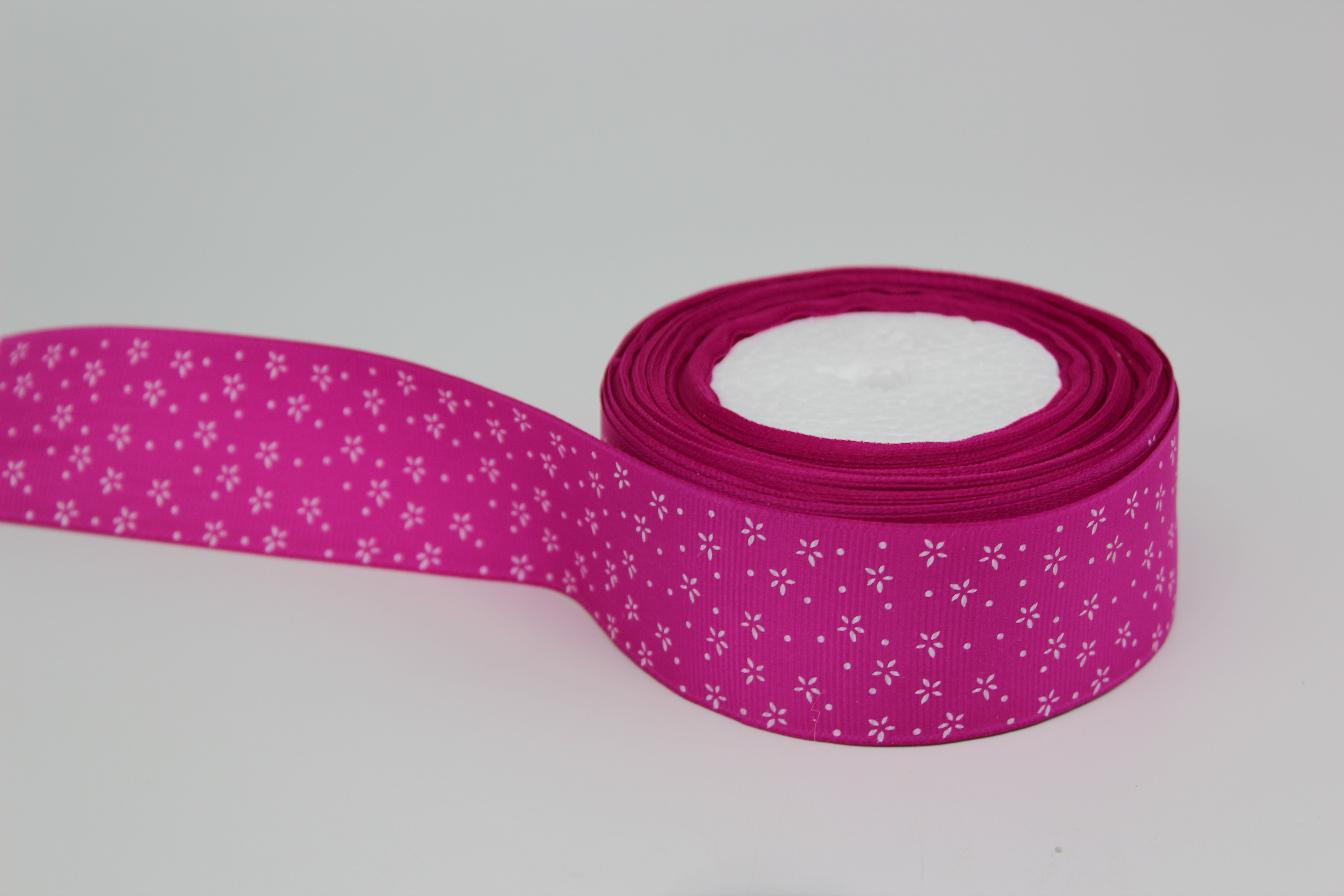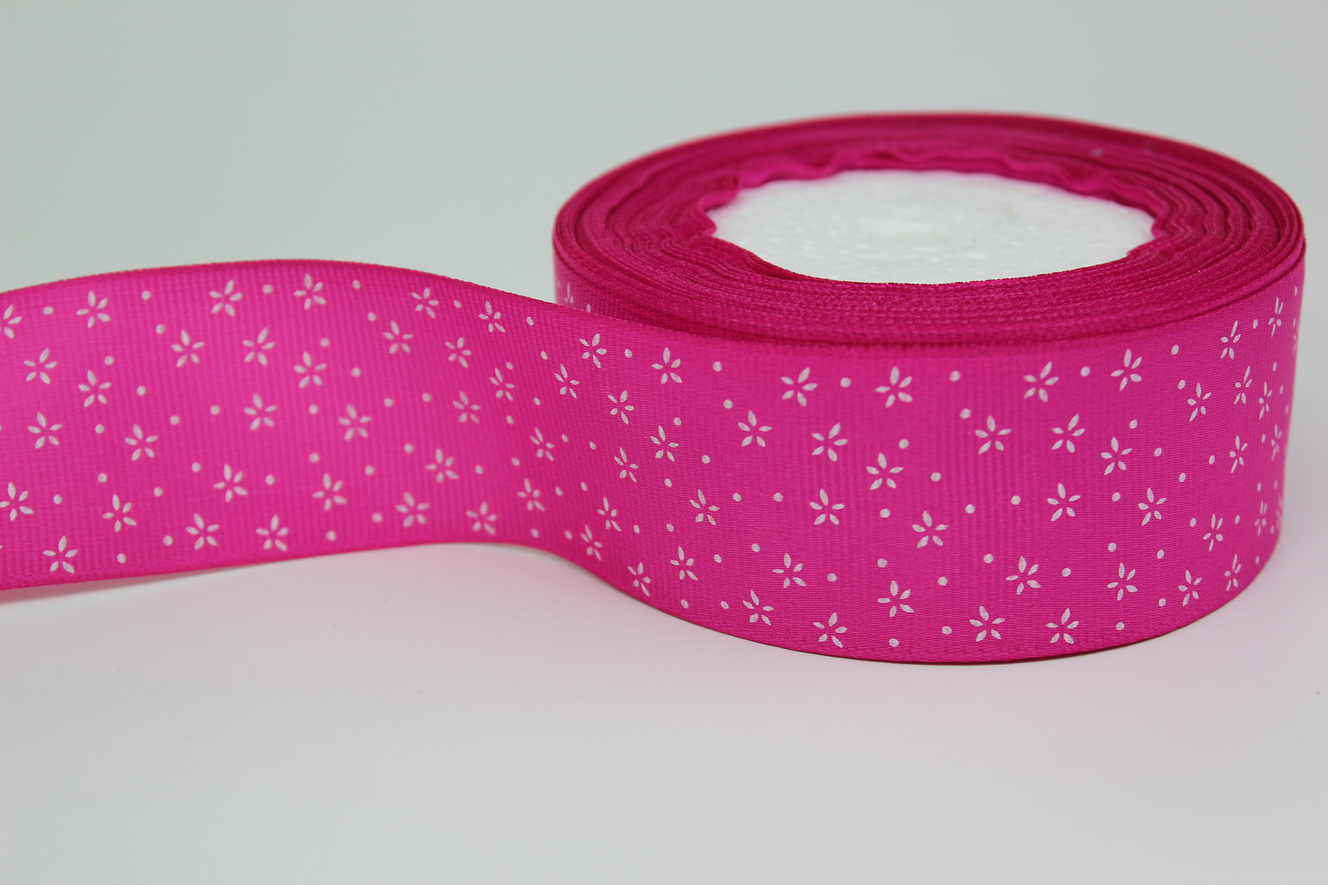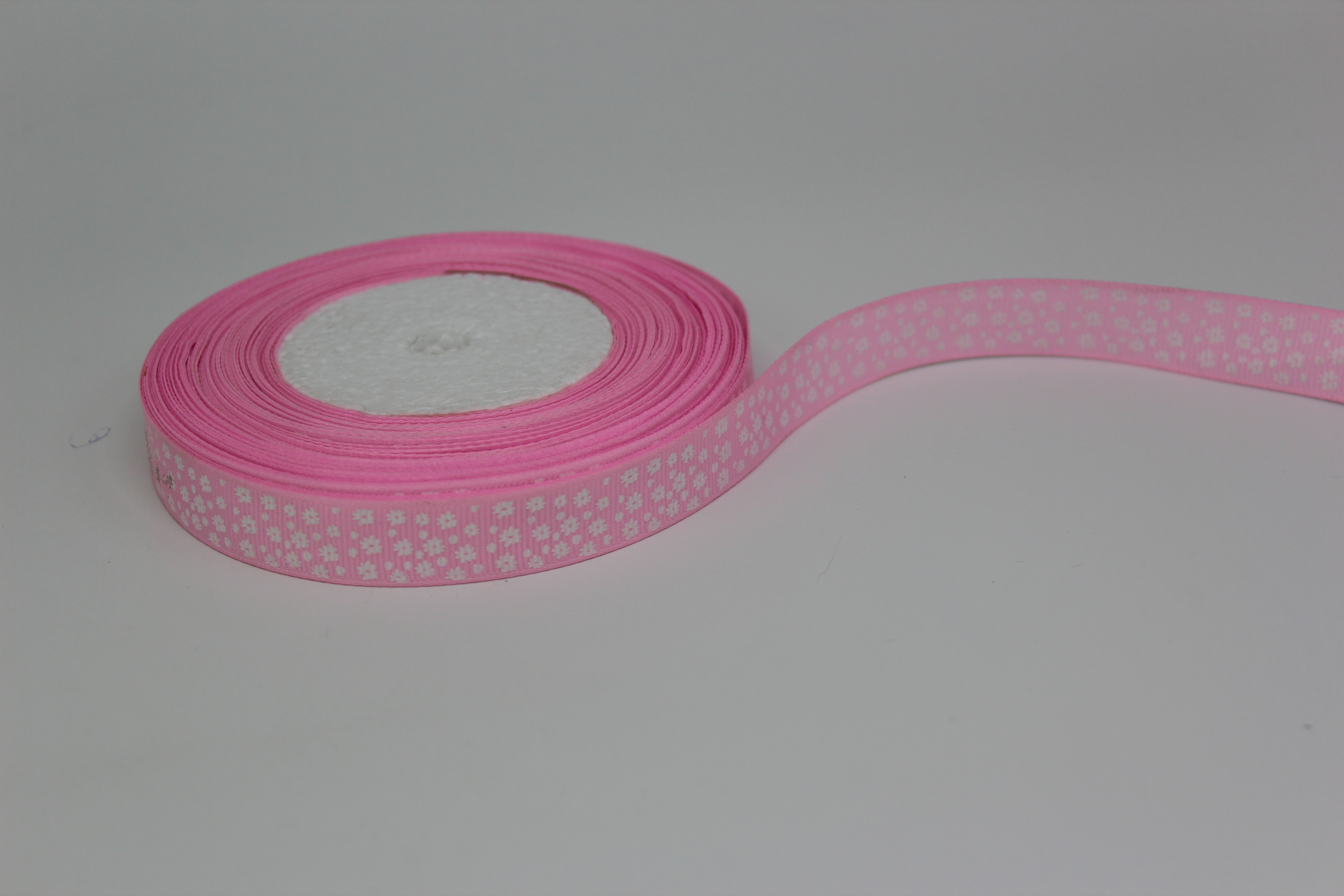 Лента репсовая 1,5 см 25 ярдов "Мелкий цветок" розовая 004