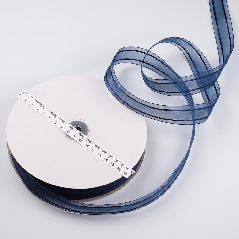 Лента органза 2,5 см две полоски  100 ярдов синяя 0120
