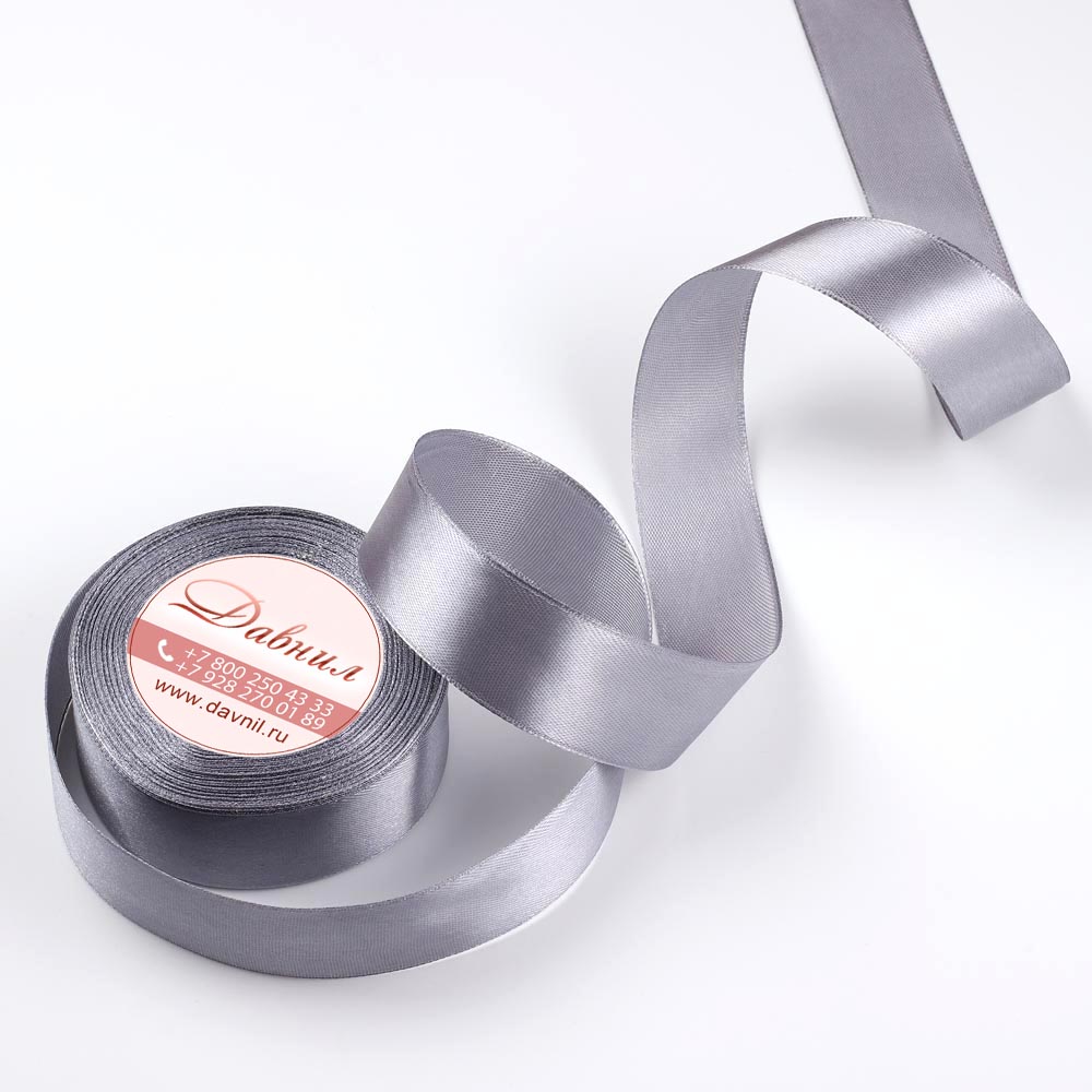 Лента атласная 2,5 см 25 ярдов серая 180