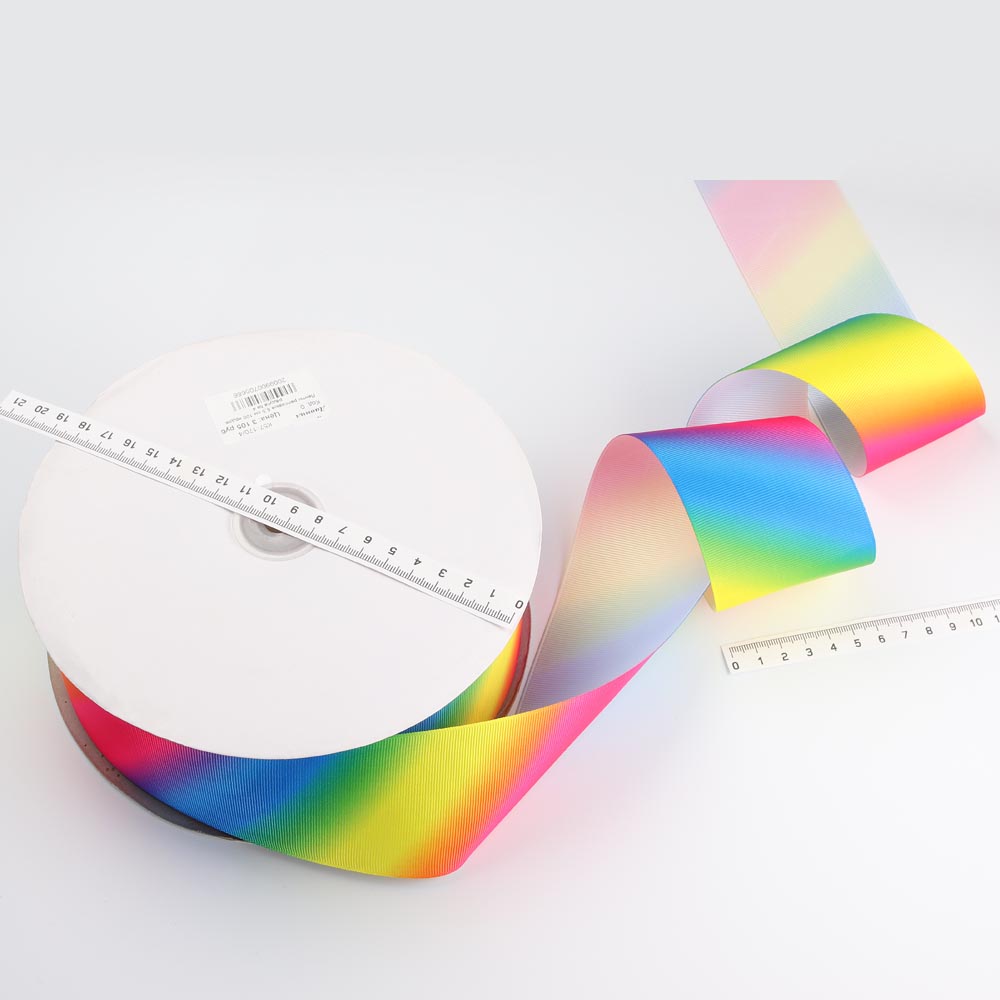 Ленты репсовые 6,5 см 100 ярдов радуга № 4