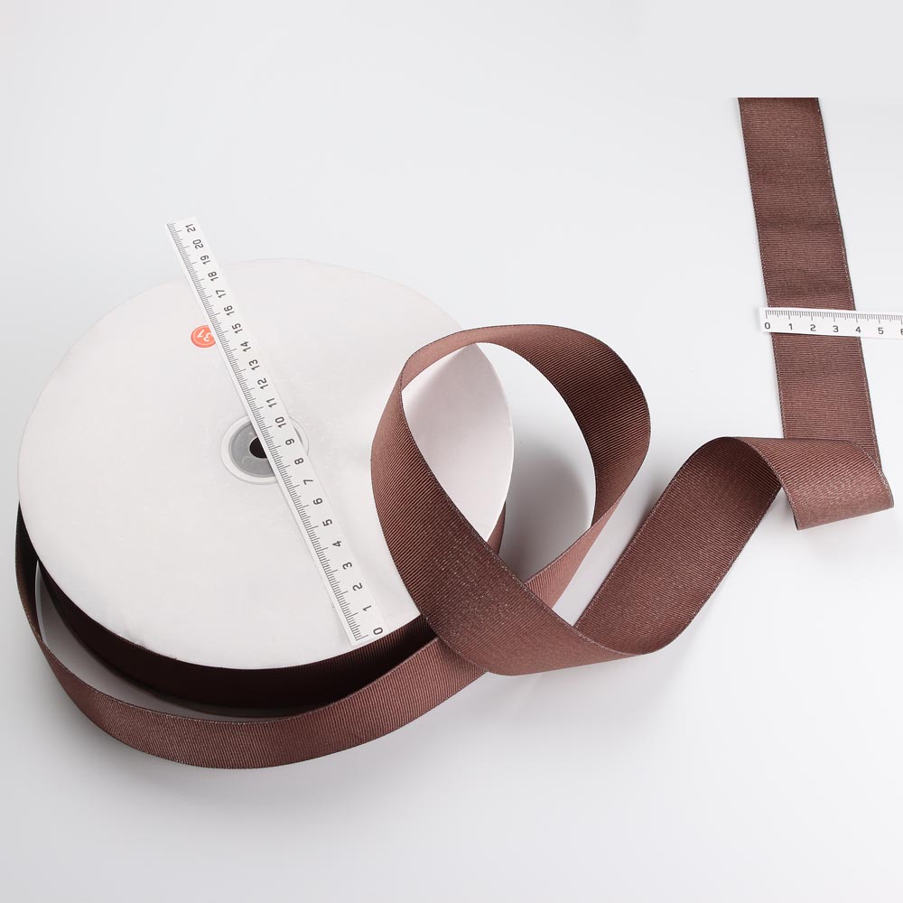 Лента репсовая с люрексом 4 см 100 ярдов коричневая 0136