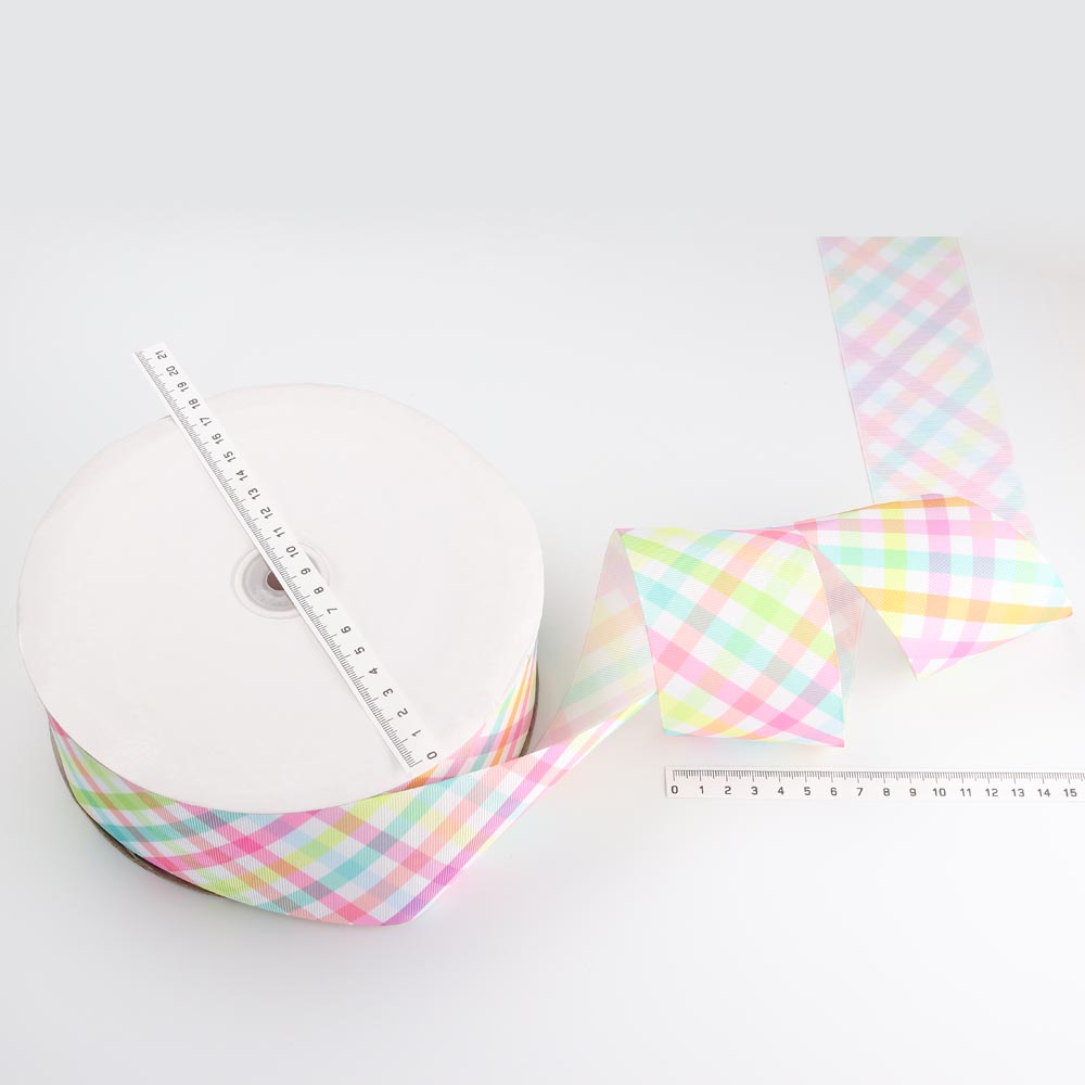Ленты репсовые 6,5 см 100 ярдов клетка № 7