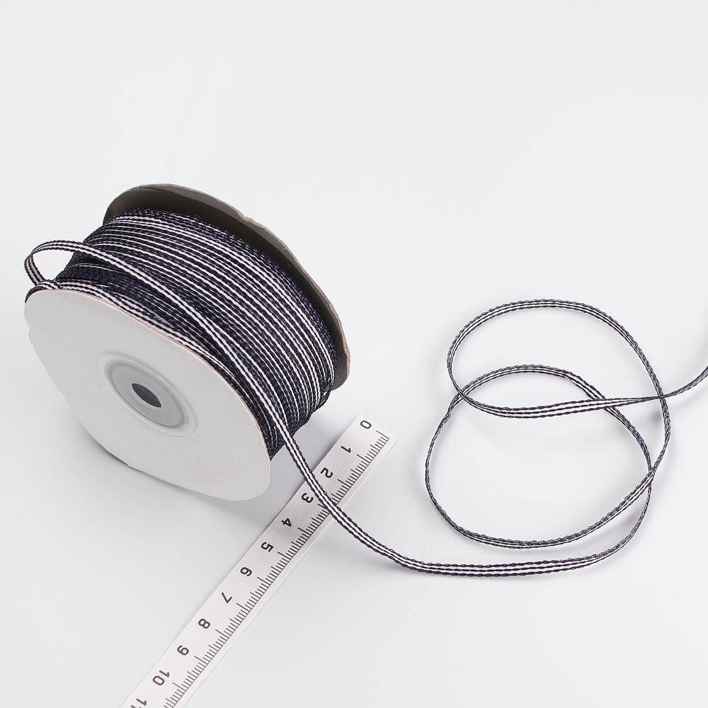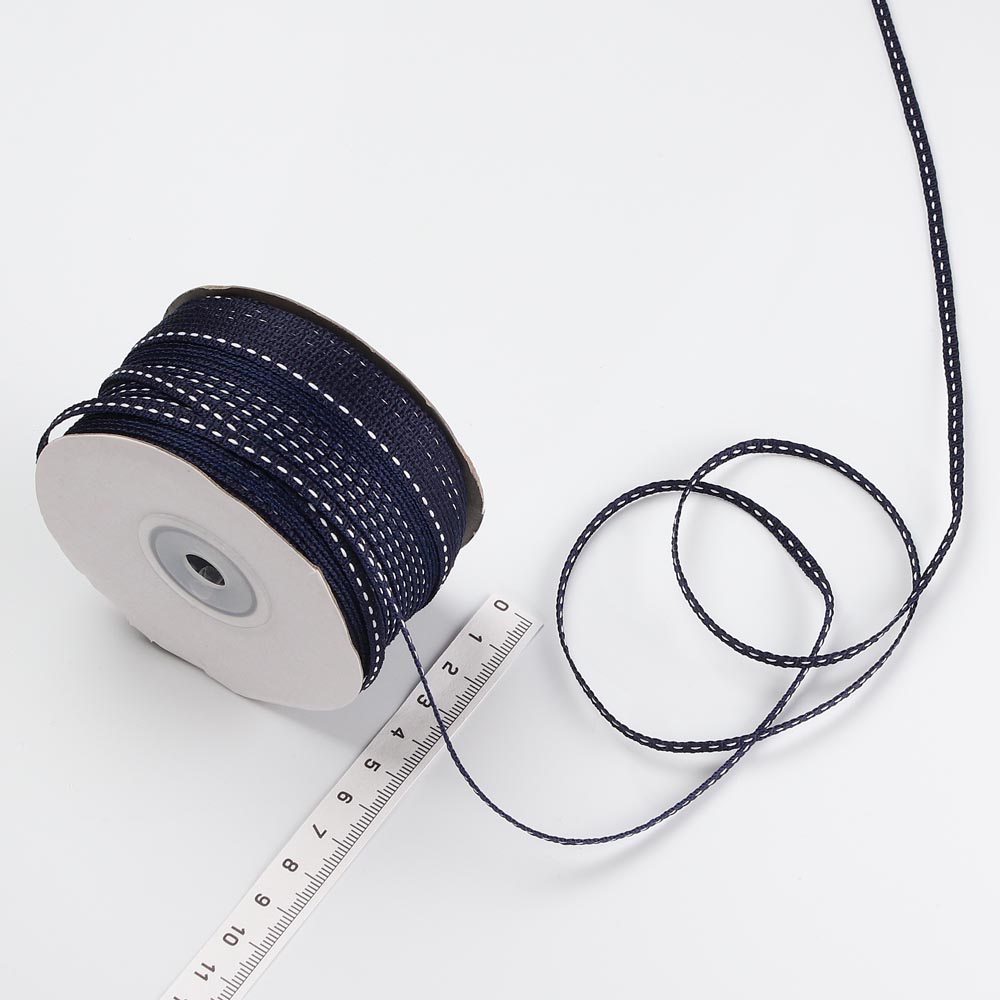 Лента репсовая 0,3 см 100 ярдов с белой строчкой синяя 0154