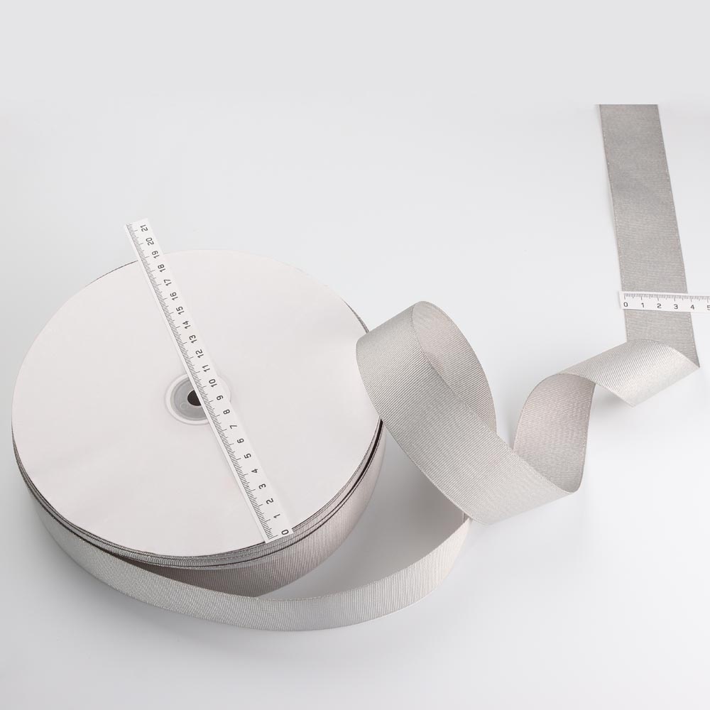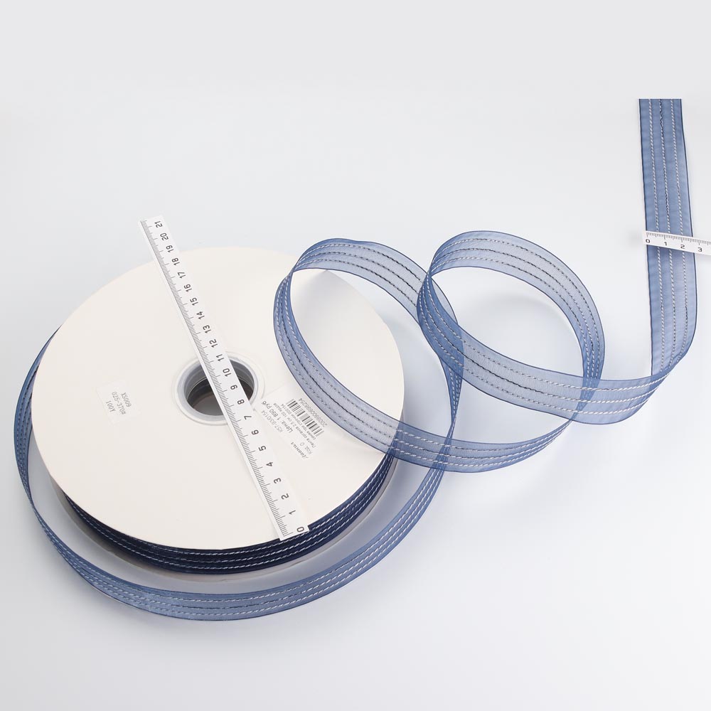 Лента органза 2,5 см две полоски 100 ярдов серая 0059