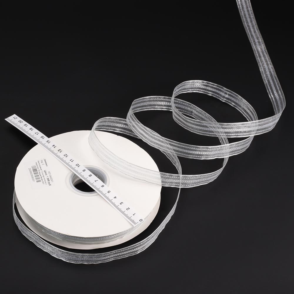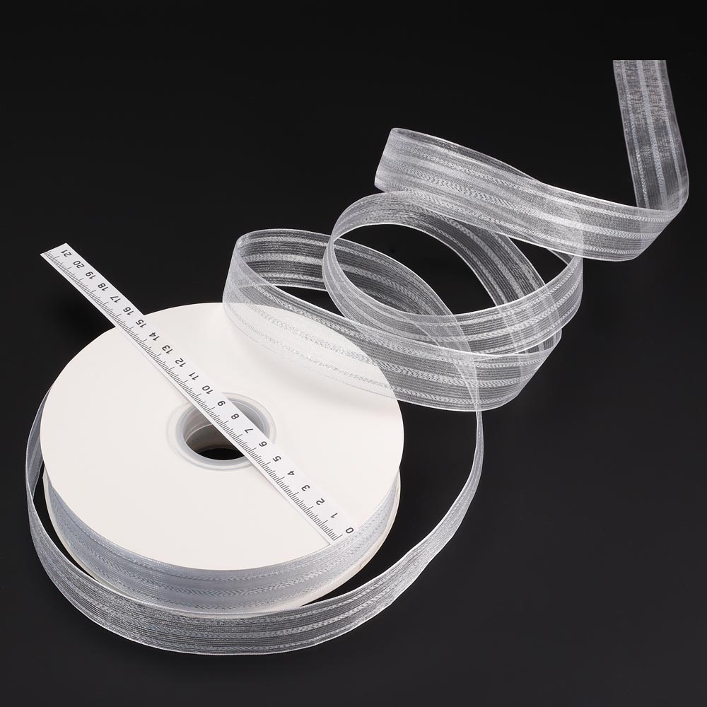 Лента органза 3 см три полоски с люрексом 100 ярдов белая 0001