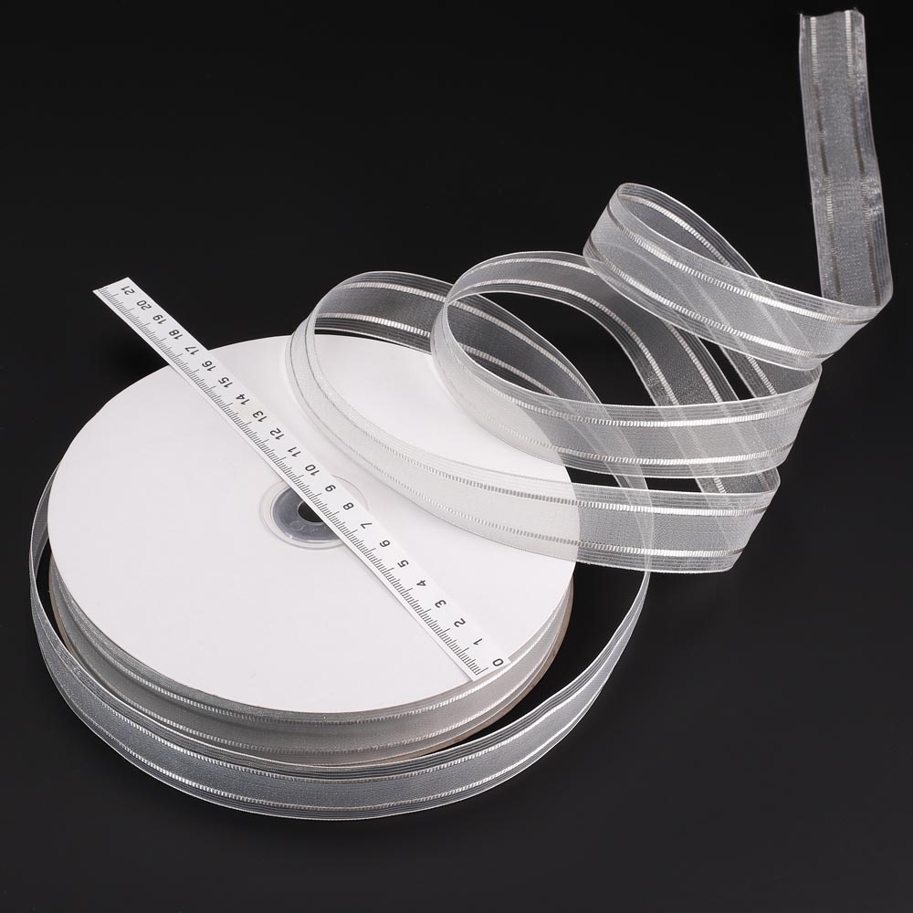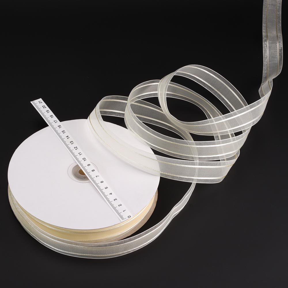 Лента органза 2,5 см две полоски 100 ярдов айвори 0002