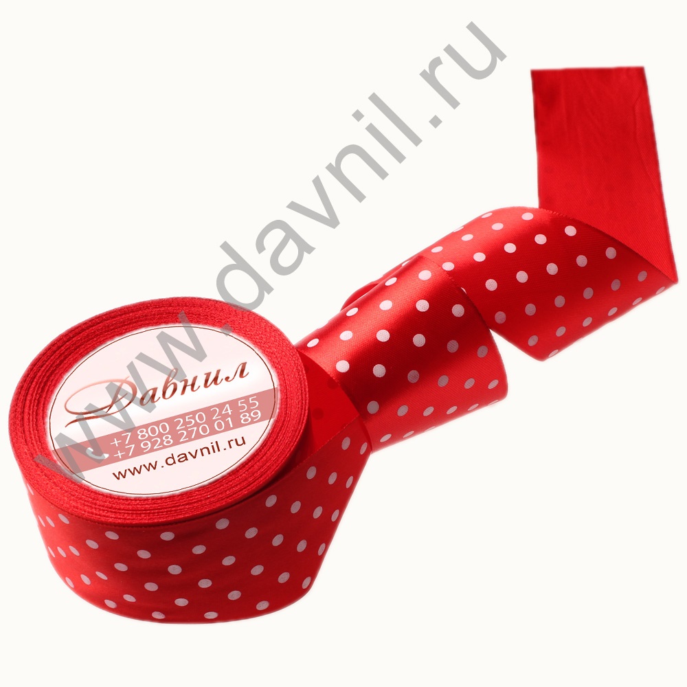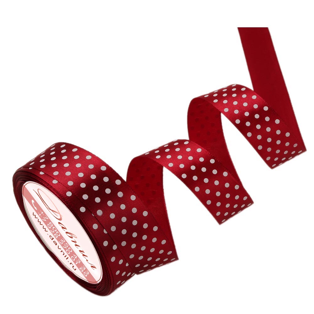 Лента атласная средний горошек 2,5 см 20 ярдов красная 026