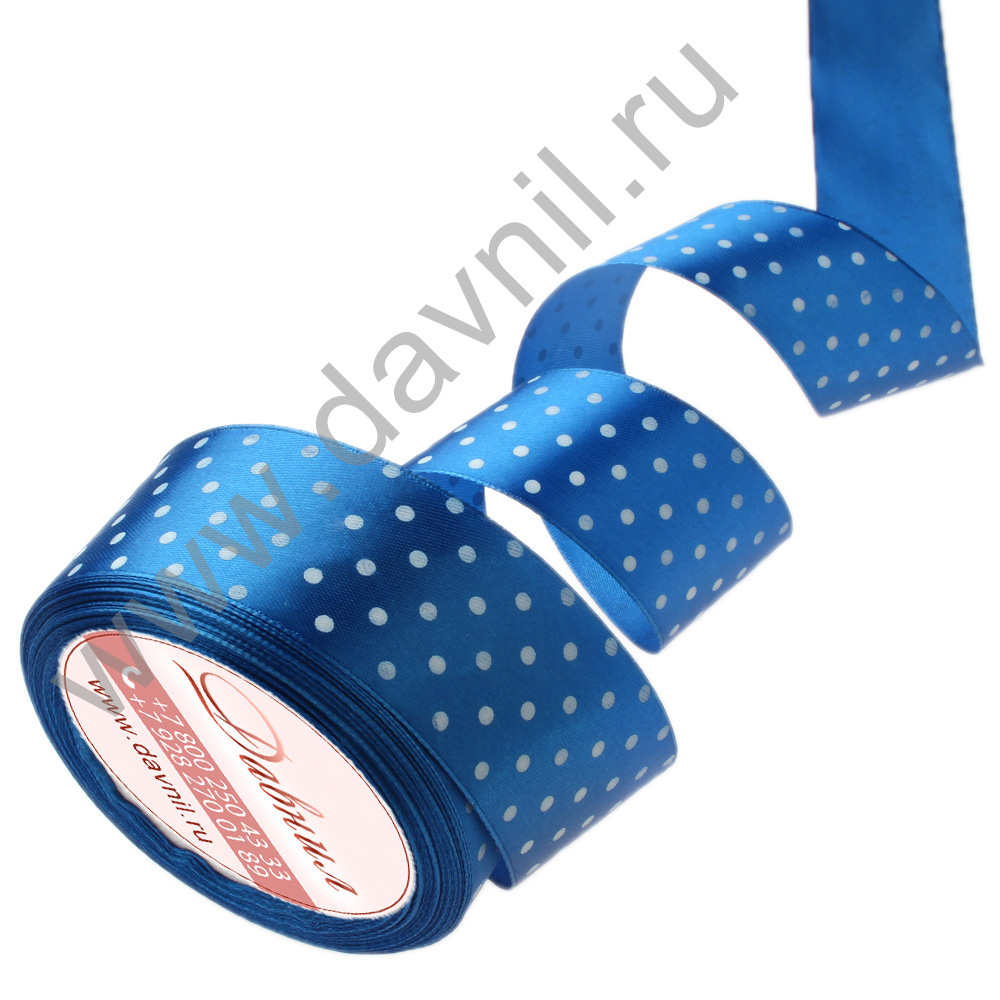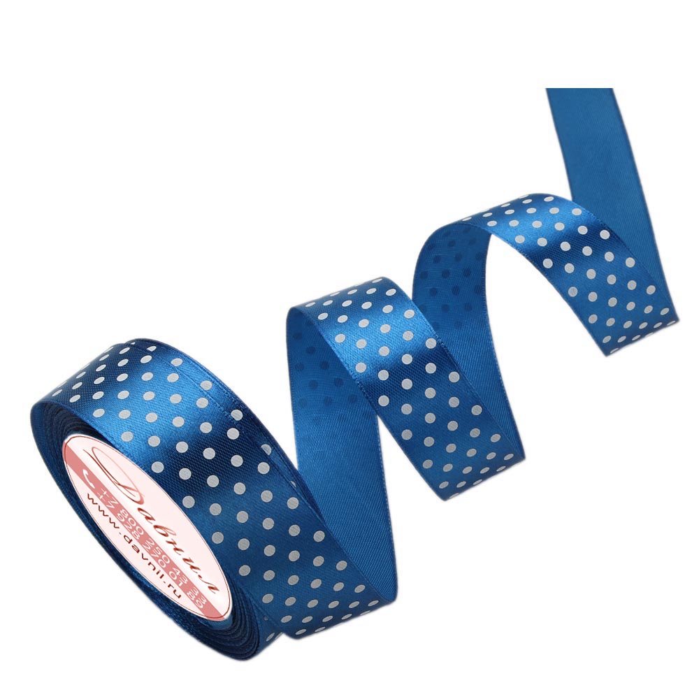 Лента атласная средний горошек 2,5 см 20 ярдов синяя 040