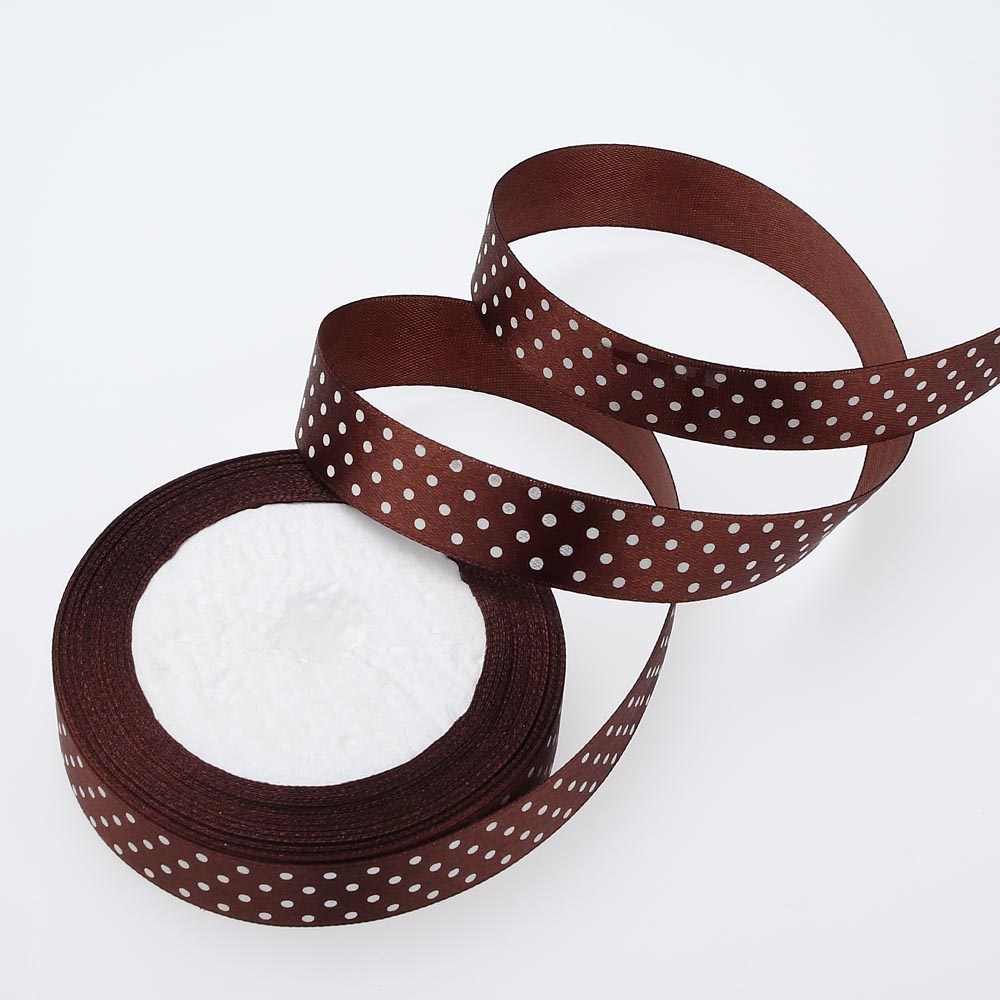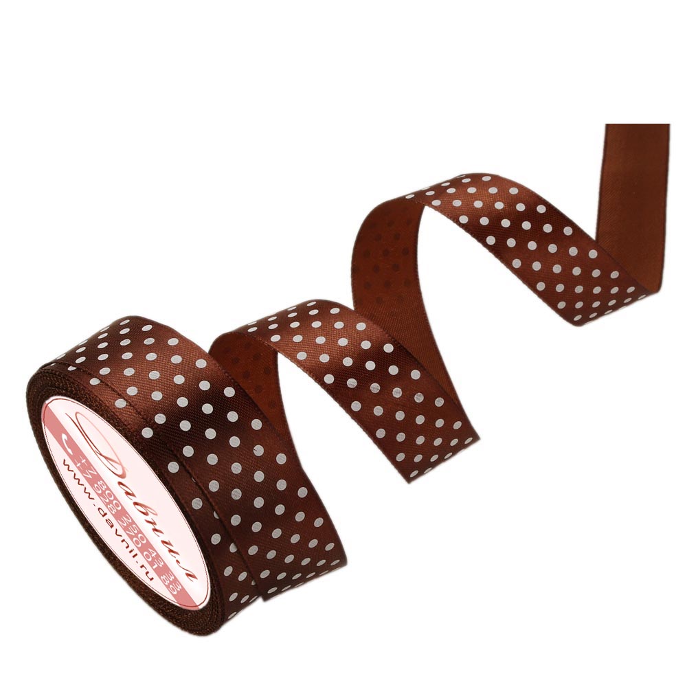 Лента атласная средний горошек 2,5 см 20 ярдов коричневая 032