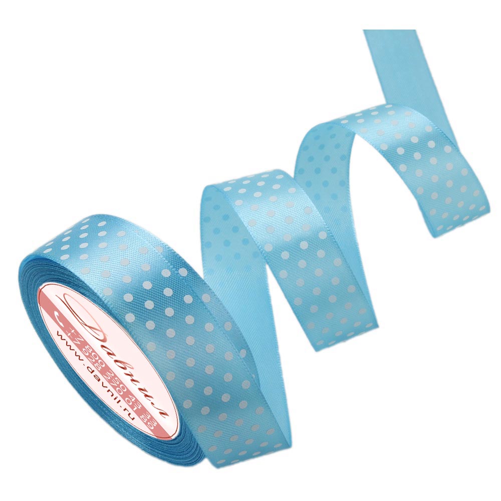 Лента атласная средний горошек 4 см 20 ярдов голубая 187