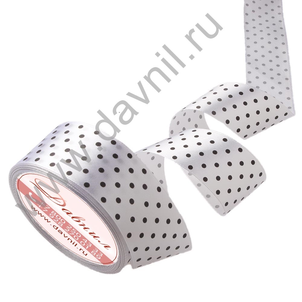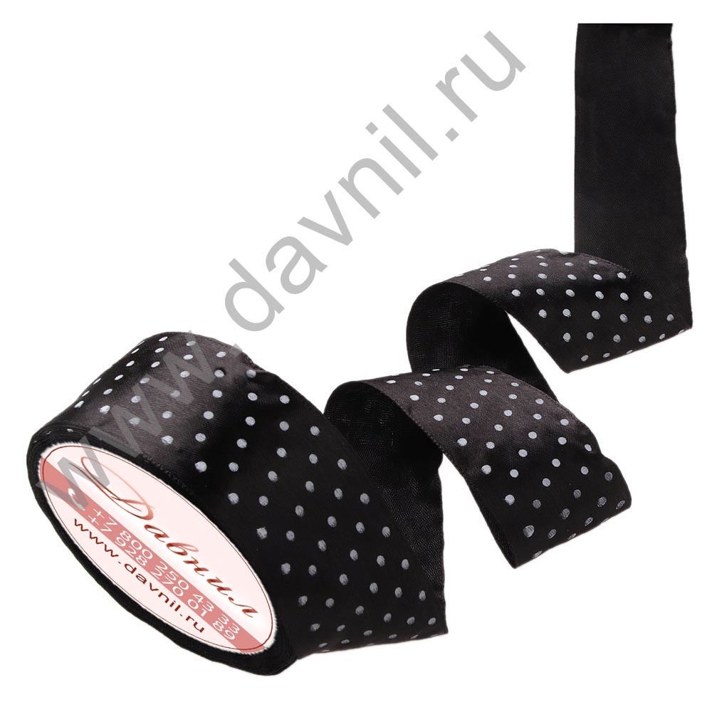 Лента атласная средний горошек 2,5 см 20 ярдов черная 039