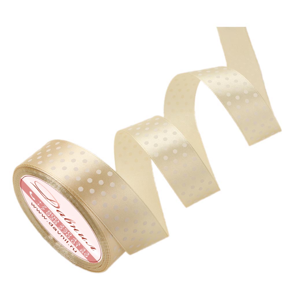 Лента атласная средний горошек 4 см 20 ярдов айвори 008