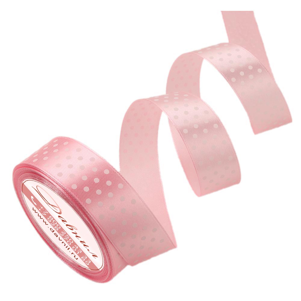 Лента атласная средний горошек 2,5 см 20 ярдов розовая 004